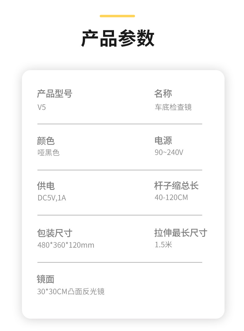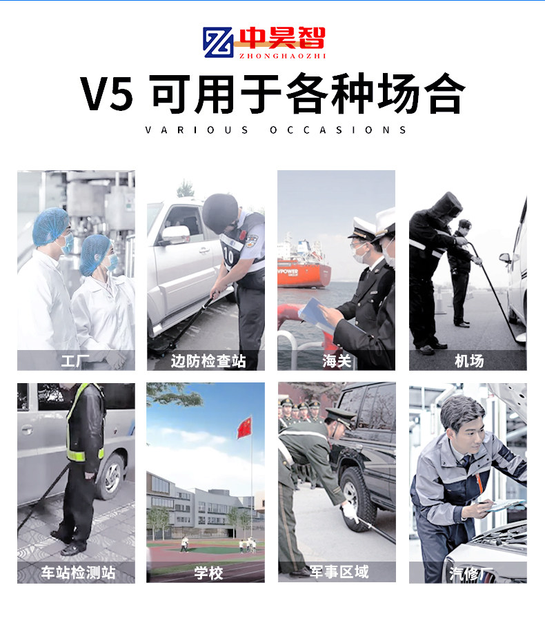 Zhonghaozhi V5 Undercarriage Inspection Mirror for Factory Inspection, Vehicle Chassis Maintenance and Detection, Retractable with Wheels and Rechargeable