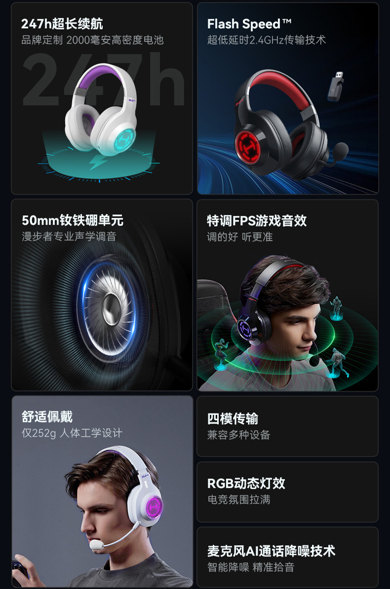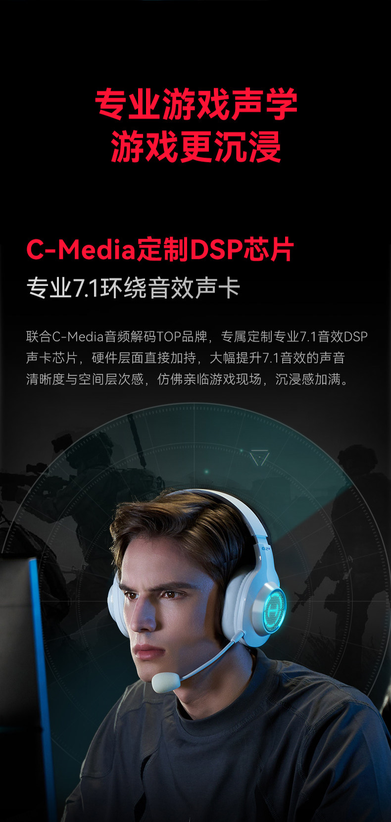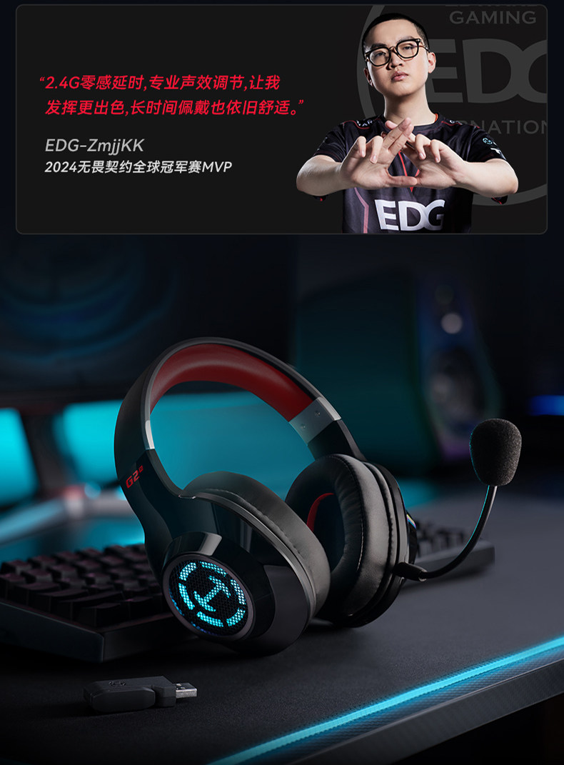 Edifier G2 Wireless 7.1 Gaming Headset Over-Ear for Desktop Computer E-Sports Dedicated for Pubg Delta Action