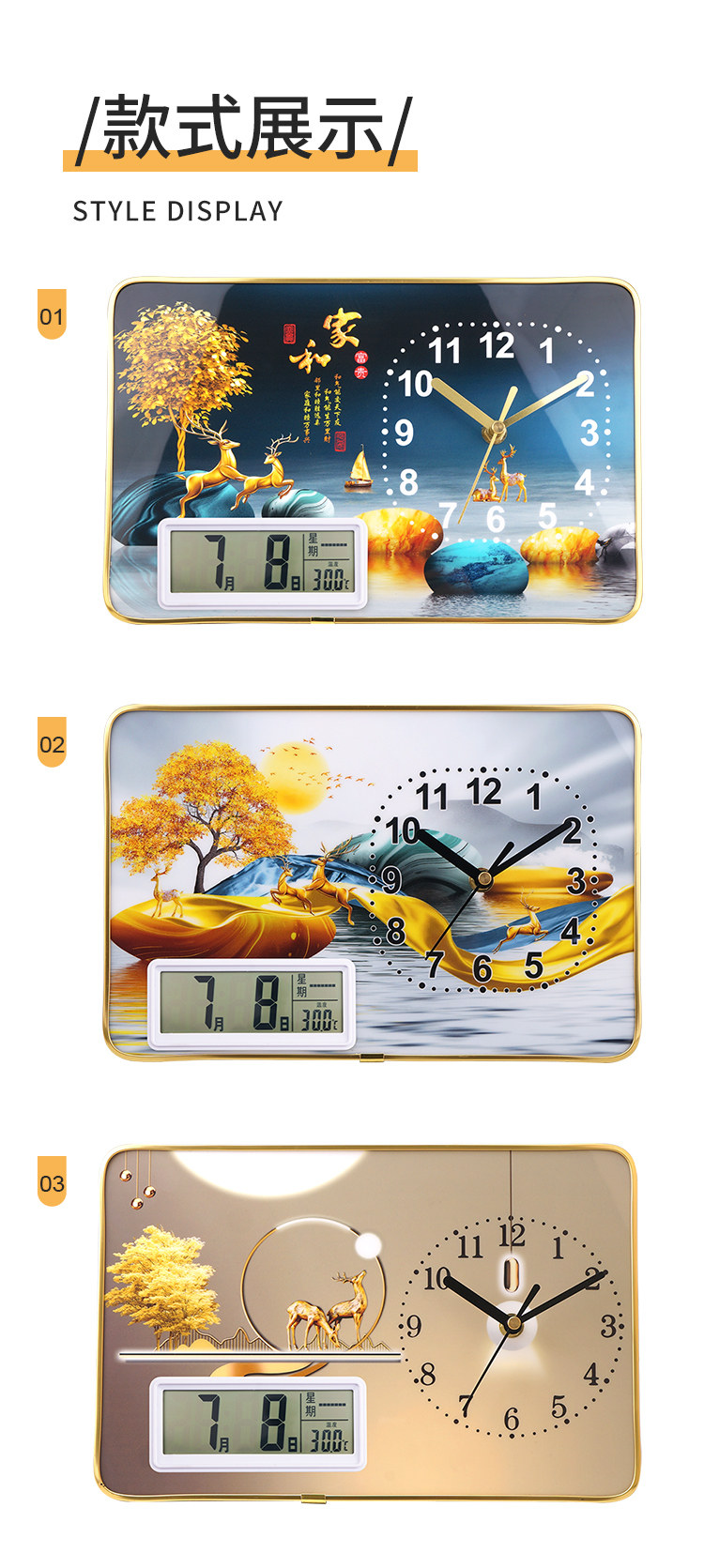 | Color Classification | Elk 01 with Calendar[Desk Clock],Elk Home and 10 with Calendar[Desk Clock],Golden Deer Blessing Calendar[Desk Clock],Elk 01 with Alarm Clock[Desk Clock],Elk House and 10 with Alarm Clock[Desk Clock],Golden Deer Brings Blessing with Alarm Clock[Desk Clock] |