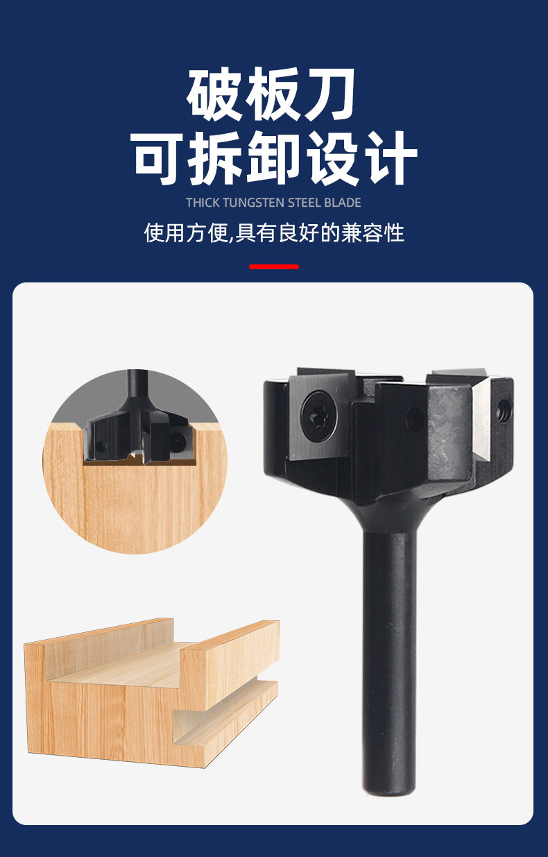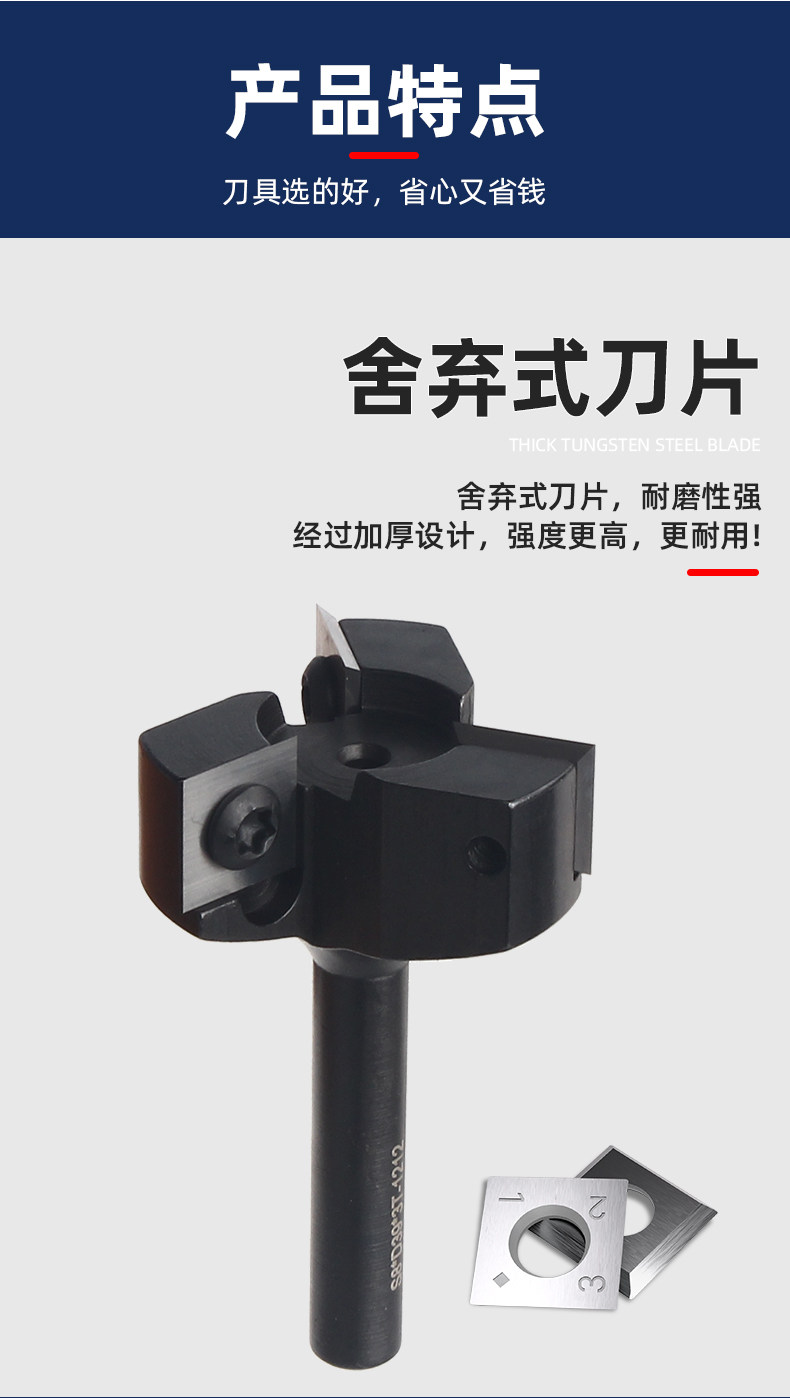 Blue Victory Disposable 3-Blade Machine Router Bit, 1/2 Shank Detachable Bottom Cleaning Milling Cutter, Large Router Woodworking Milling Cutter