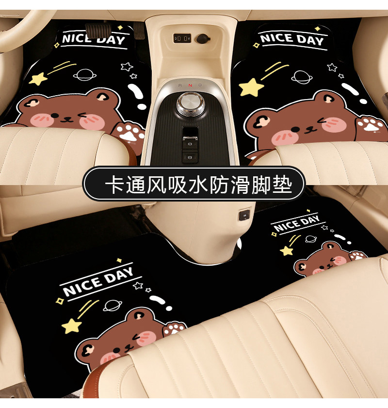 Car Floor Mats Are Non-Slip, Water-Absorbent, and Stain-Resistant, Single-Piece Carpet-Style, Universal, Easy to Clean, Removable Cartoon Car Mats for the Driver and Passenger