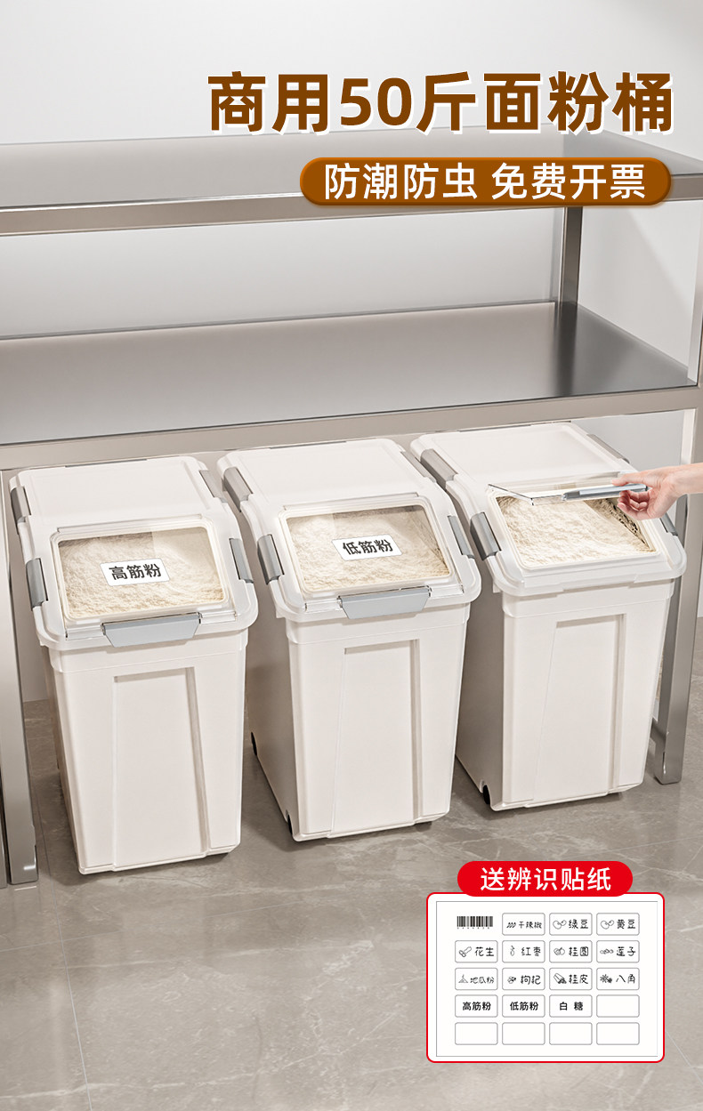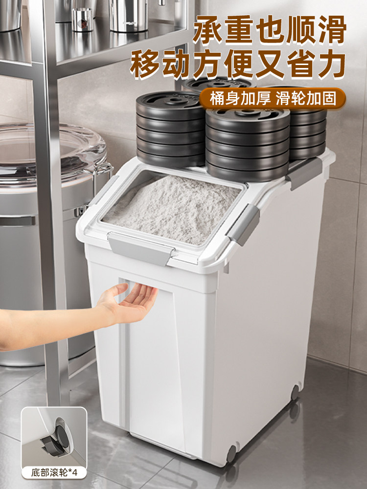 Commercial Flour Container 50kg Large-Capacity Baking Flour Bin Flour Cart Cake Shop Flour Storage Box Household Sealed Moisture-Proof