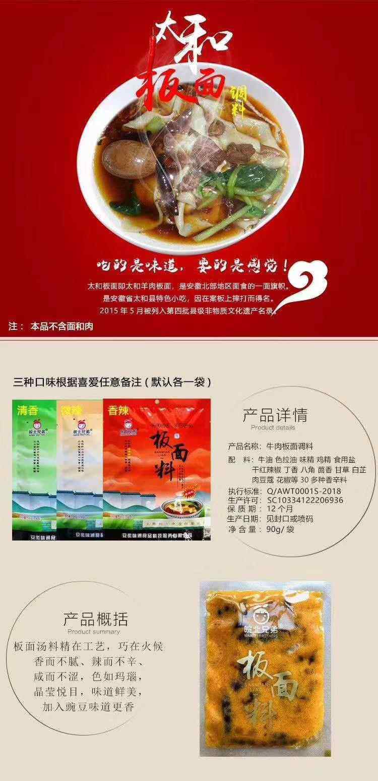 Anhui Specialty: Wannbei Brothers Taihe Beef Noodle Soup, Spicy Braised Noodle Authentic Noodle Seasoning 90/150g 1.0kg