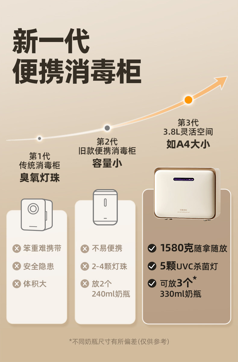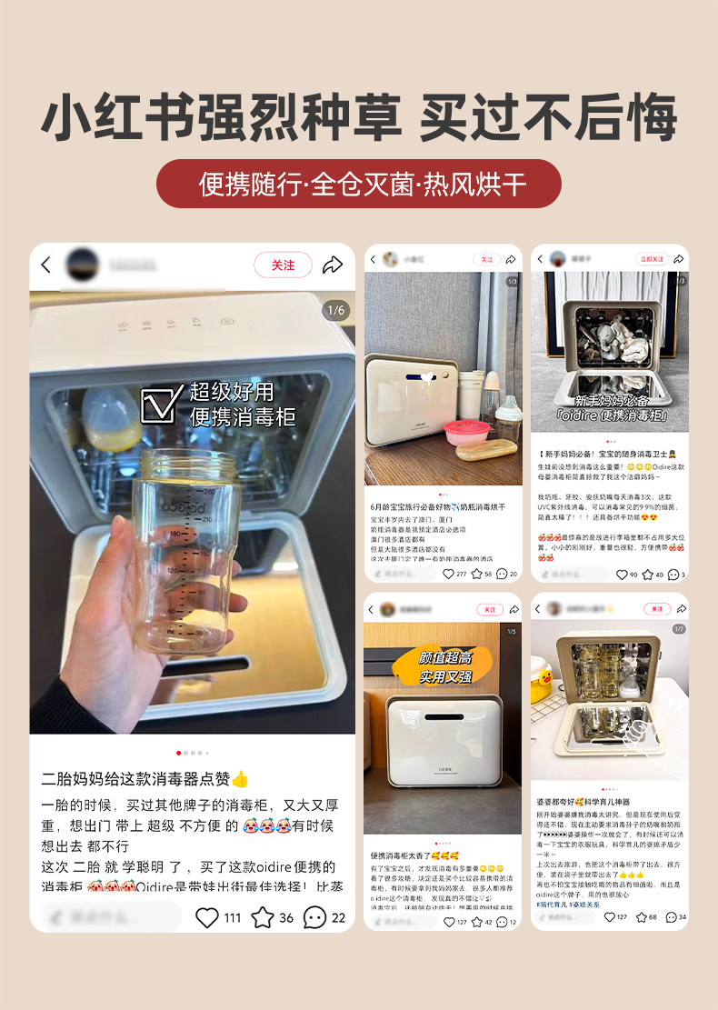 Oidire Portable Baby Bottle Sterilizer with Drying and Ultraviolet Sterilization Mini Baby-Specific Sterilizer