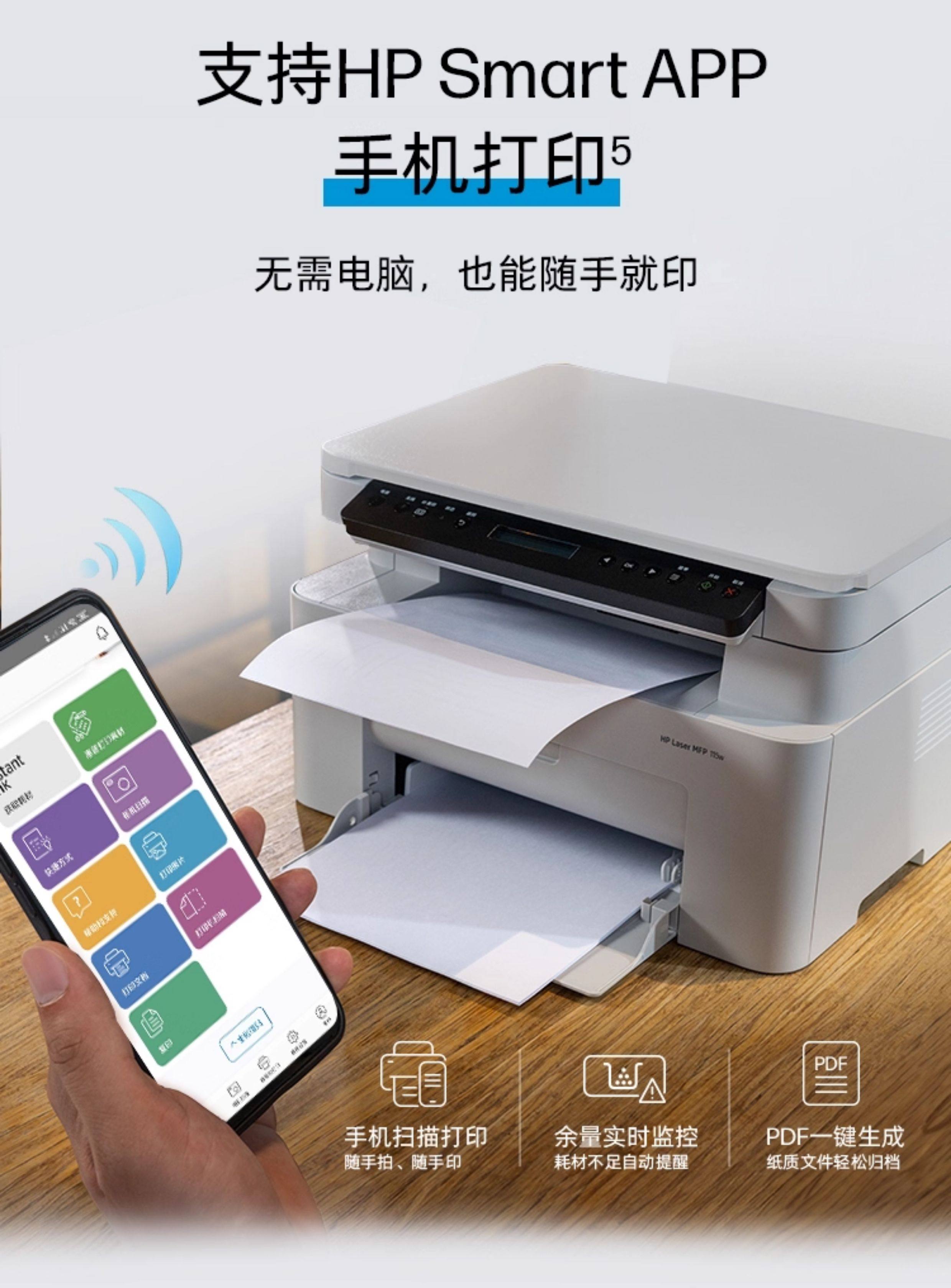 Hp 105W 115W Black and White Laser Printer, Wireless Printer Compatible with Mobile Phones, All-In-One A4 Copy and Scan Device, Small Home-Use, Suitable for Students and Office Use, 101 105A 126A 115Nw