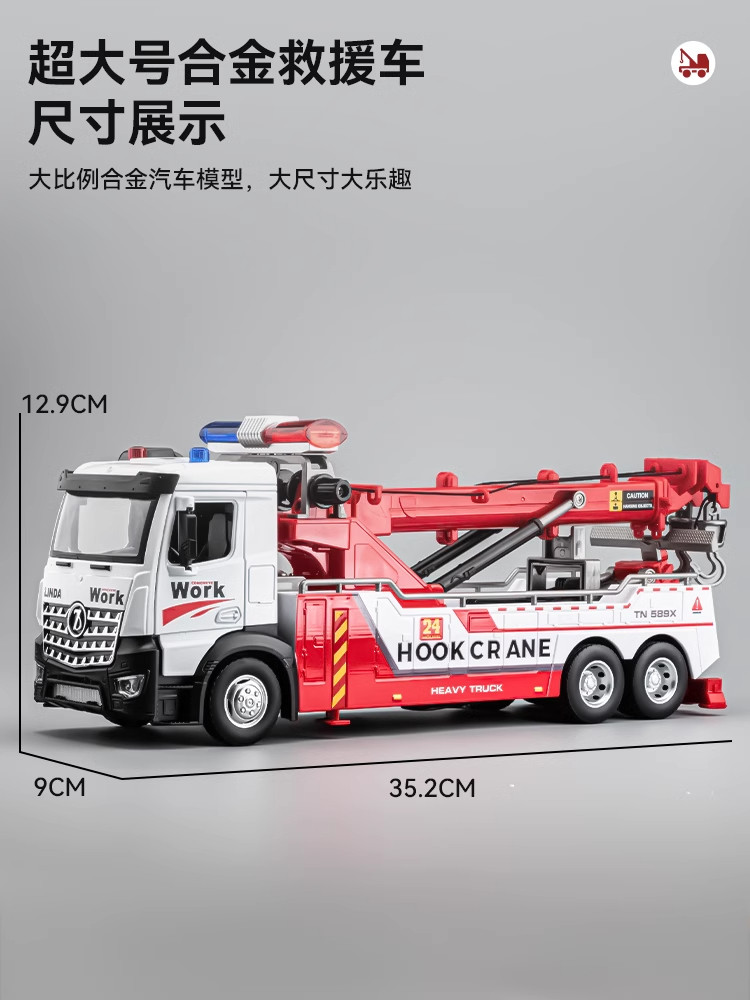 Extra-Large Children's Road Rescue Vehicle Toy Alloy Simulation Crane Transport Vehicle Engineering Vehicle Toy for Boys
