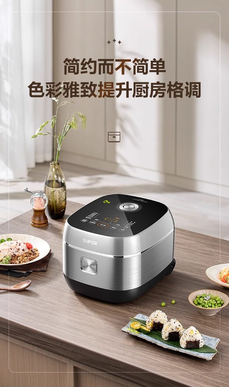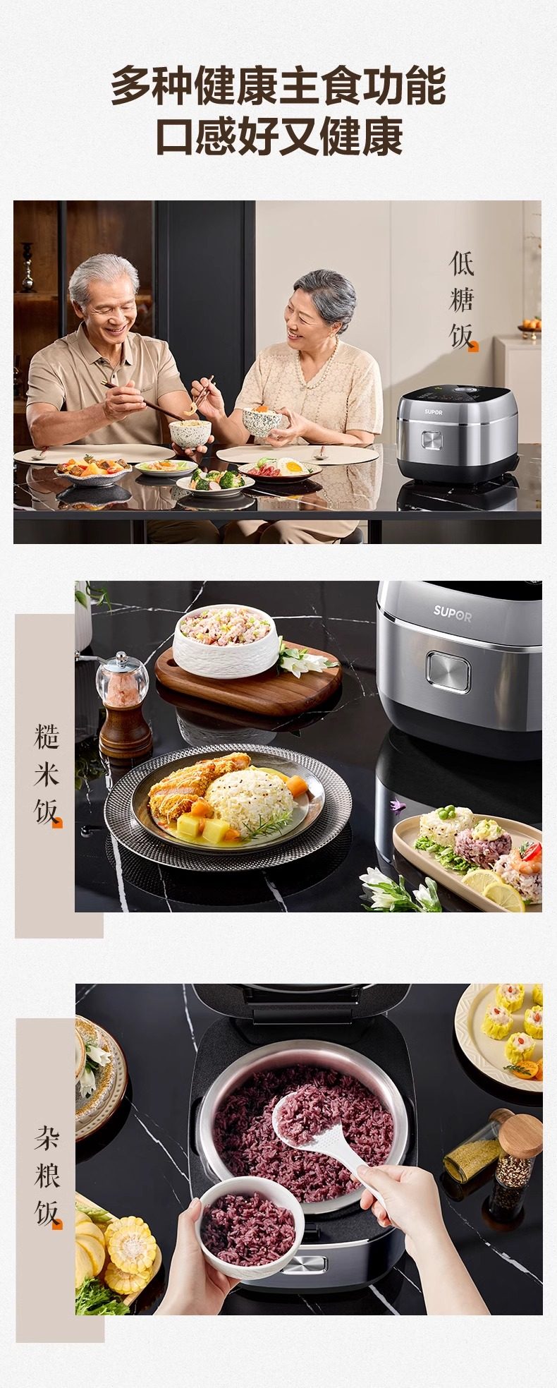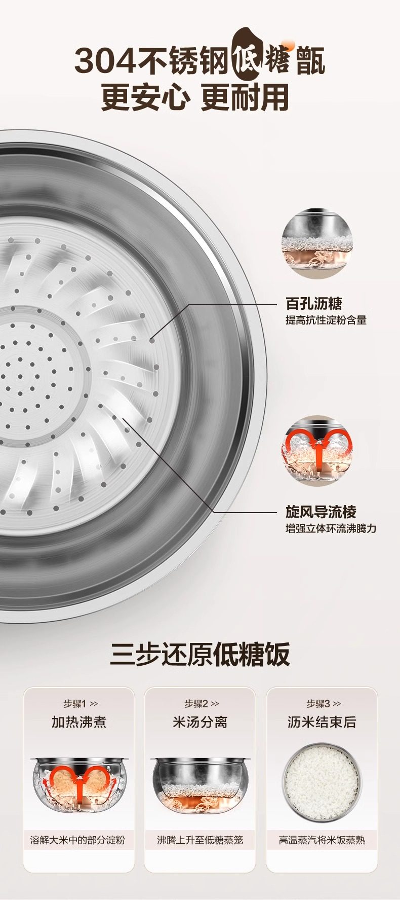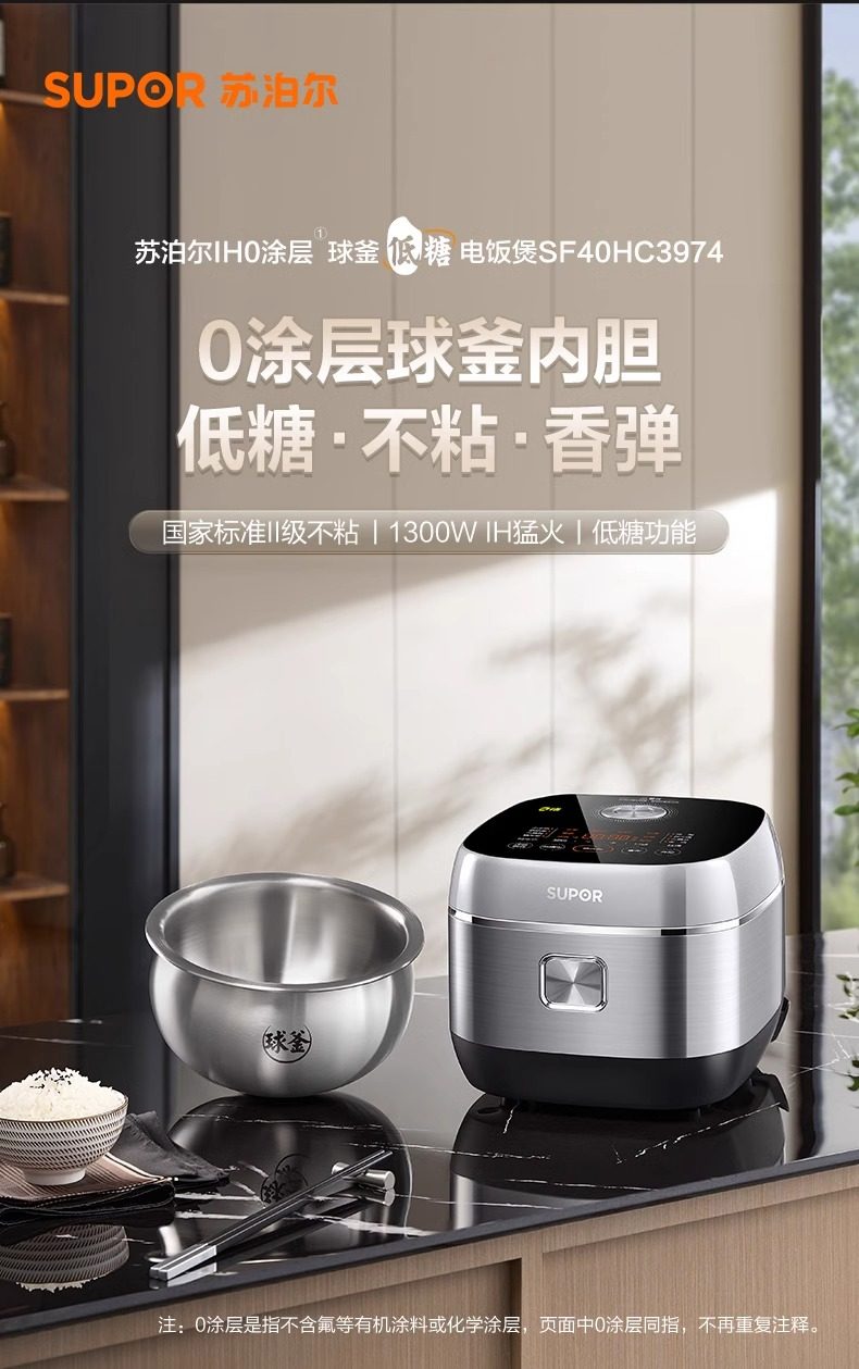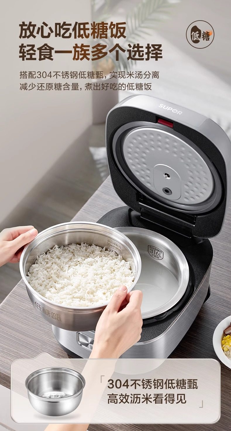 Supor Low-Sugar Rice Cooker with Rice Soup Separation, Rice Draining, Steaming Rice Pot, Ih Spherical Pot, 0 Coating, 316L Official Genuine Product