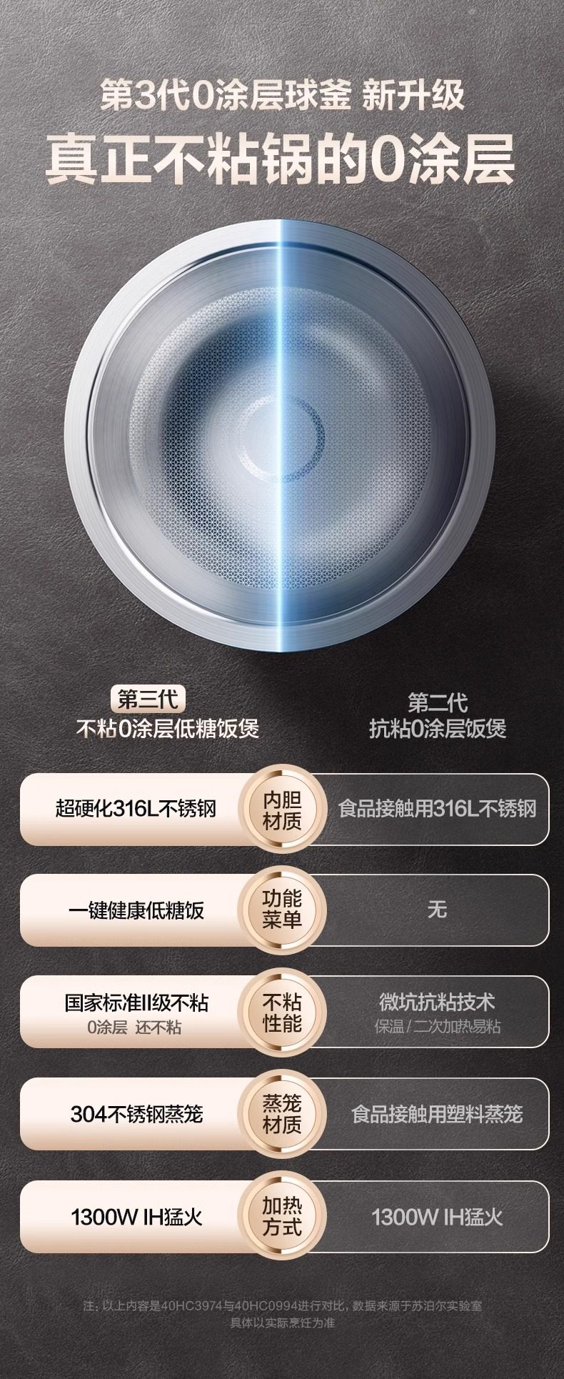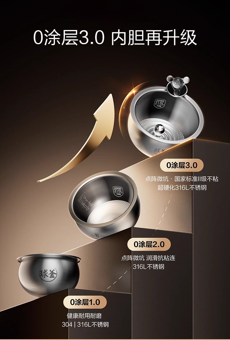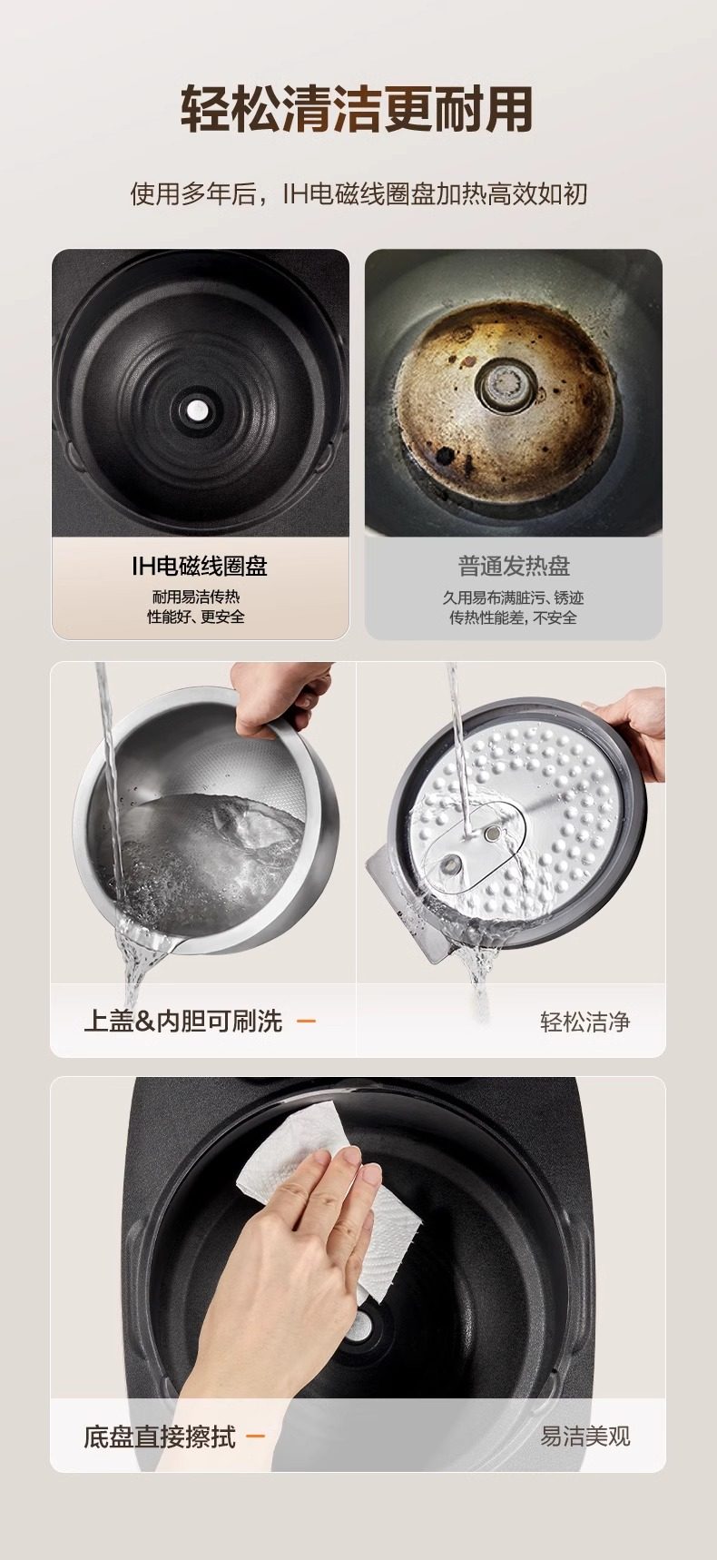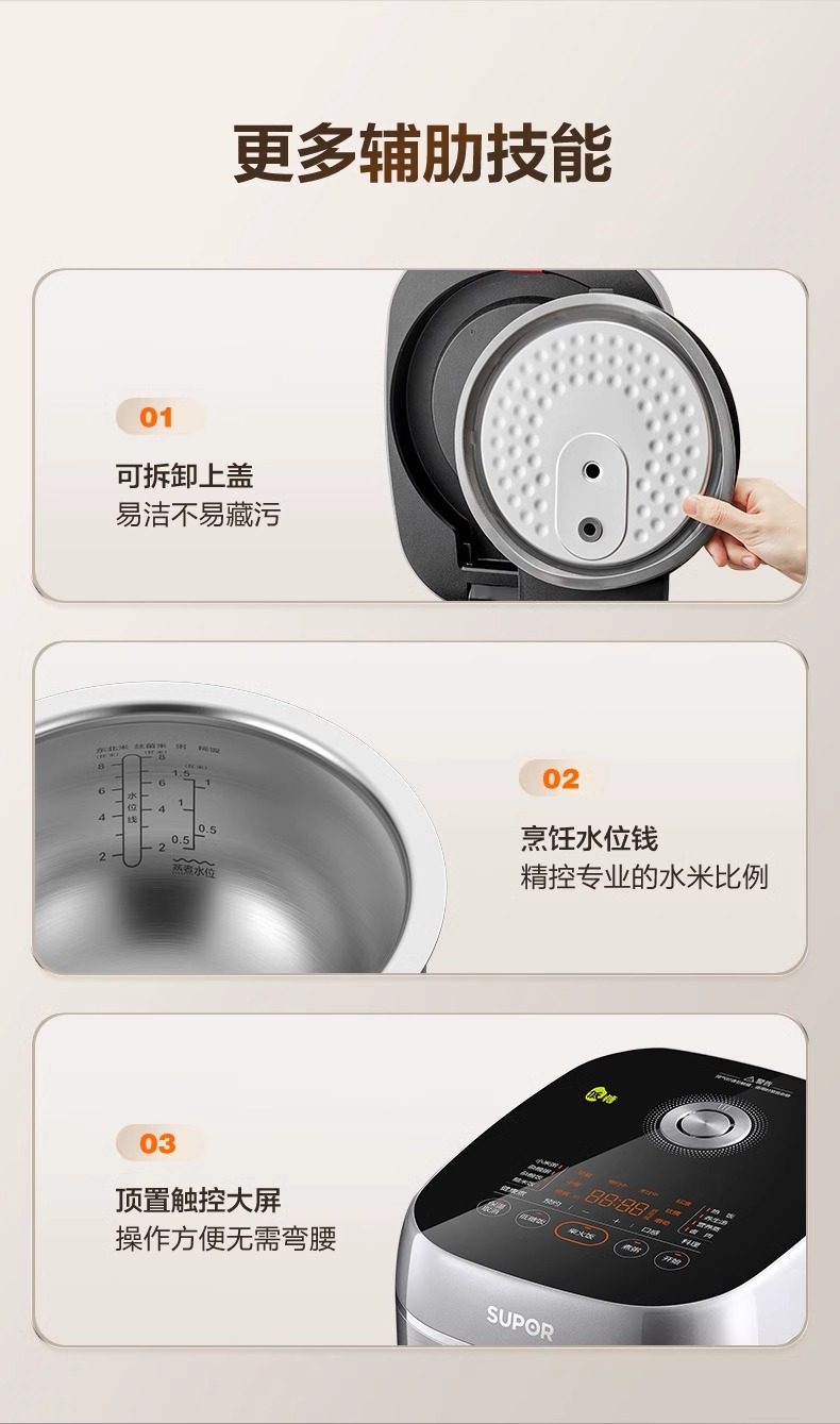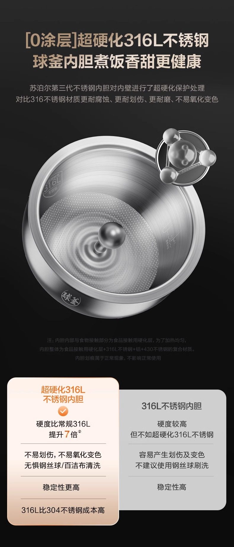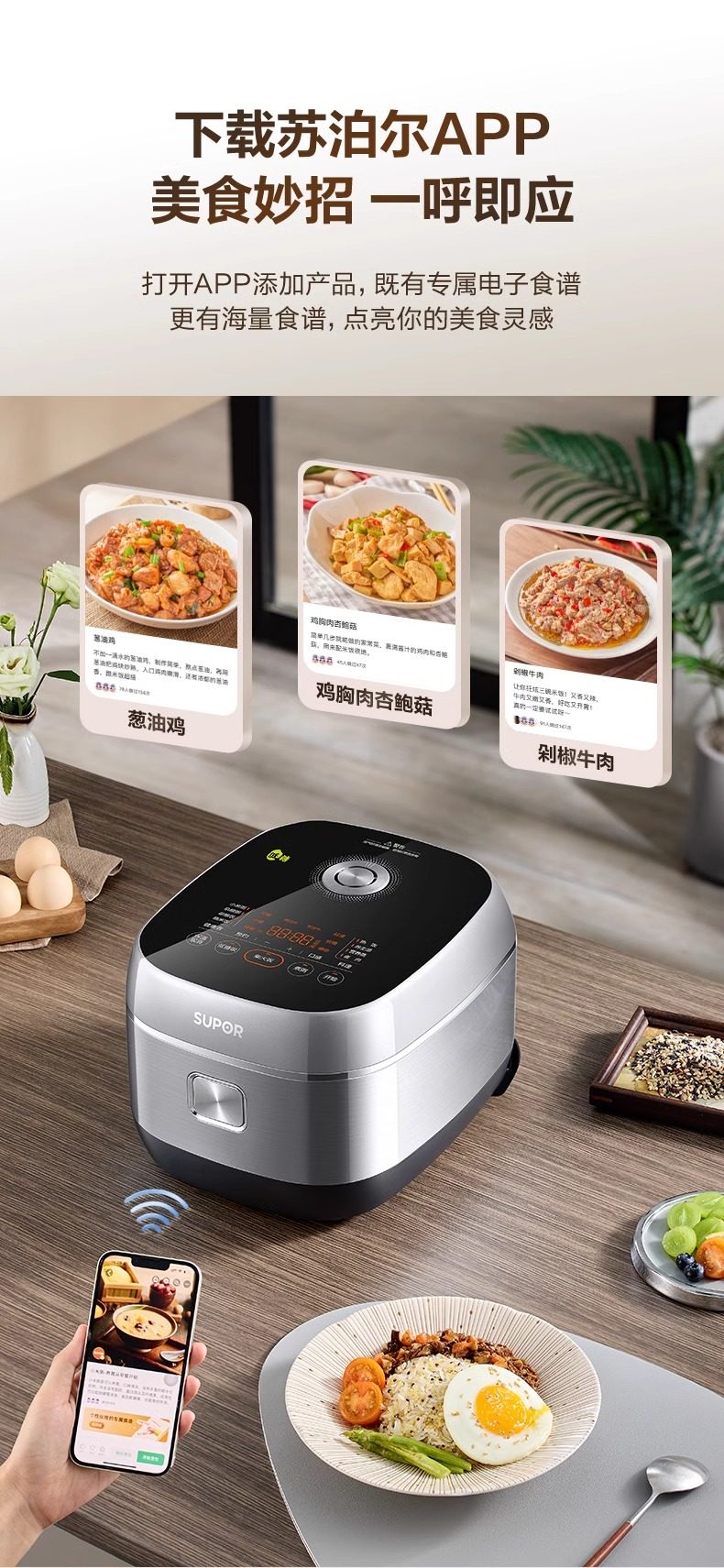 Supor Low-Sugar Rice Cooker with Rice Soup Separation, Rice Draining, Steaming Rice Pot, Ih Spherical Pot, 0 Coating, 316L Official Genuine Product