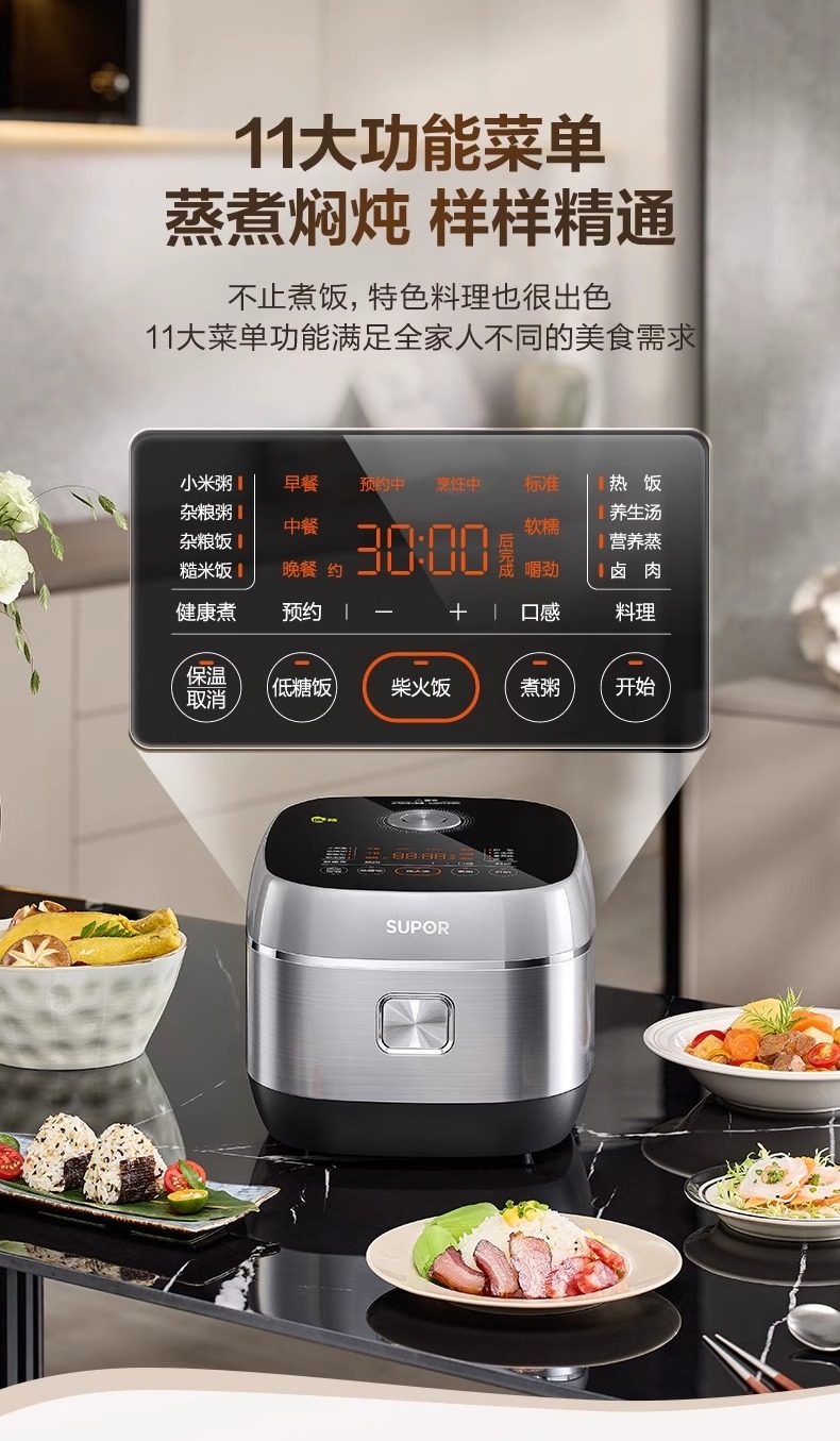 | Multifunctional Rice Cooker | Quick Meal,Steaming,Cake,Firewood Rice,Assorted Rice,Stone Pot Rice,Frozen Rice,Hot Meals,Multigrain Rice,Waterless and Oil-Free Stewed Meat and Stewed Vegetables,Cook Porridge,Rice with Rice,Stewed Chicken,Soup,Cooking Rice,Grains,Stewed Tendons,Claypot Rice,Porridge,Brown Rice,Low Sugar Cooking,Sushi Rice |