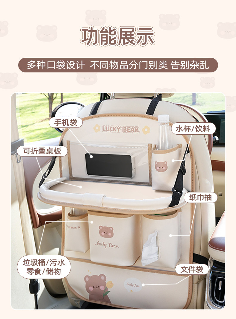 Car Seat Back Storage Rack, Car Seat Back Storage Hanging Bag, Car Small Table Board, Girls' Car Interior Accessories Collection