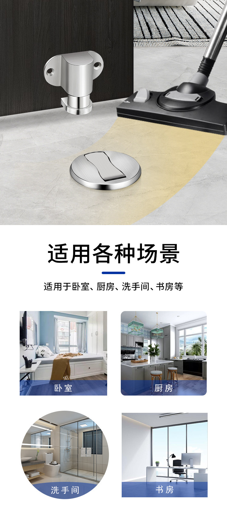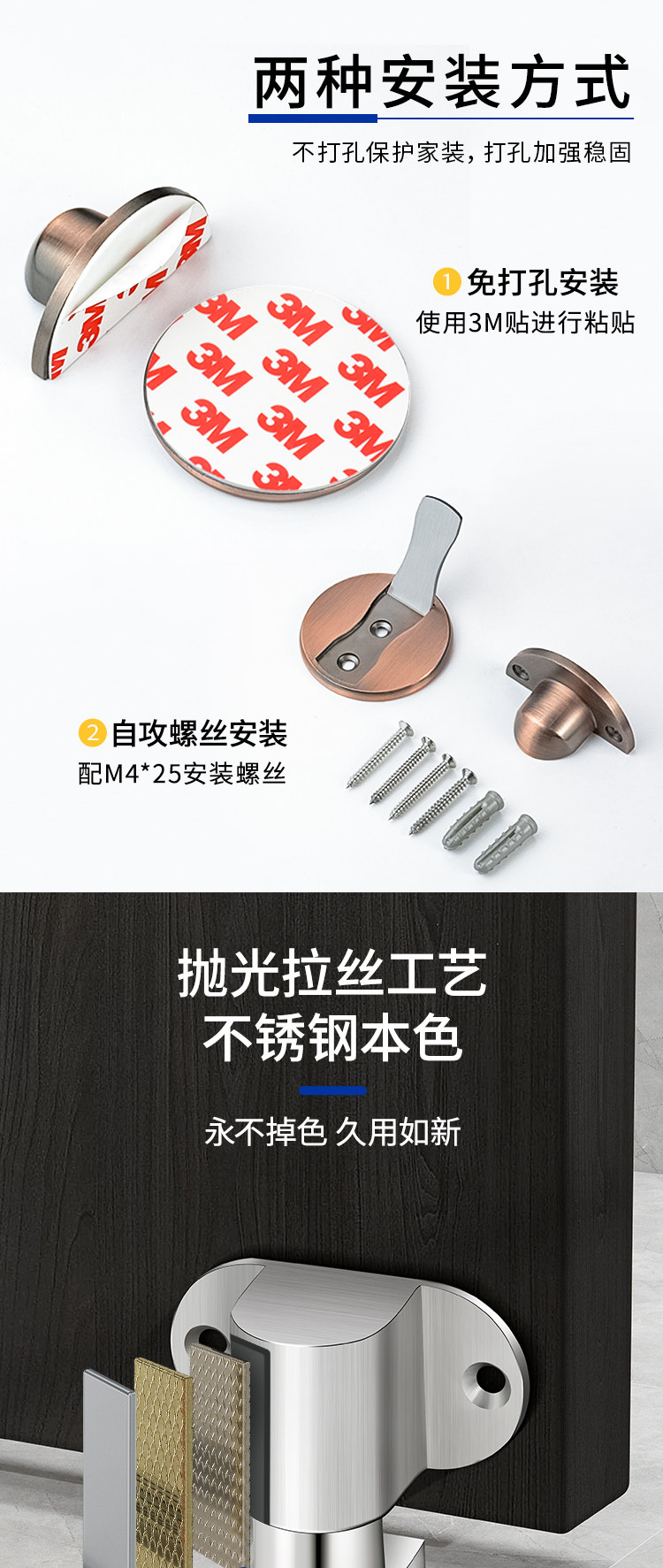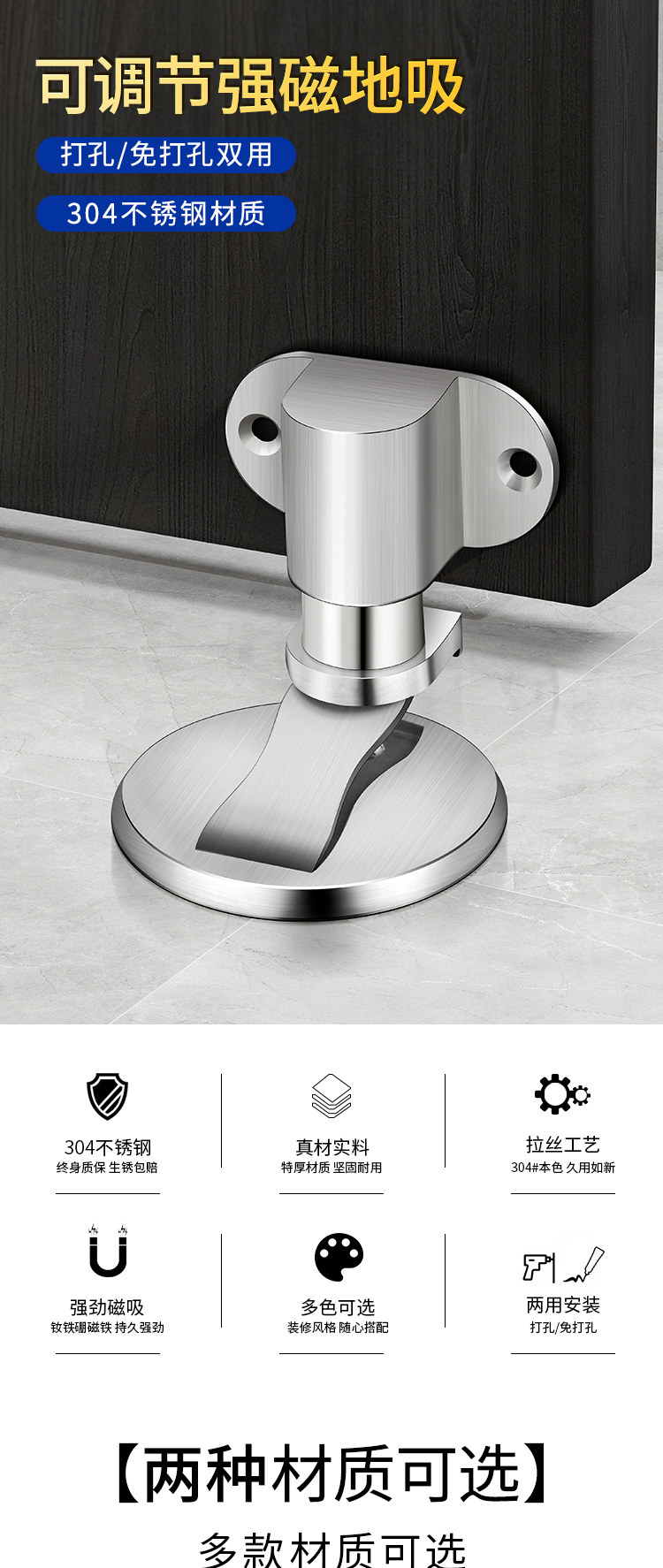 Floor-Mounted Door Stopper, No-Drill Installation, New Anti-Collision Invisible Door Stopper, Bathroom Door Stopper, Strong Magnetic Door Stopper Behind the Door