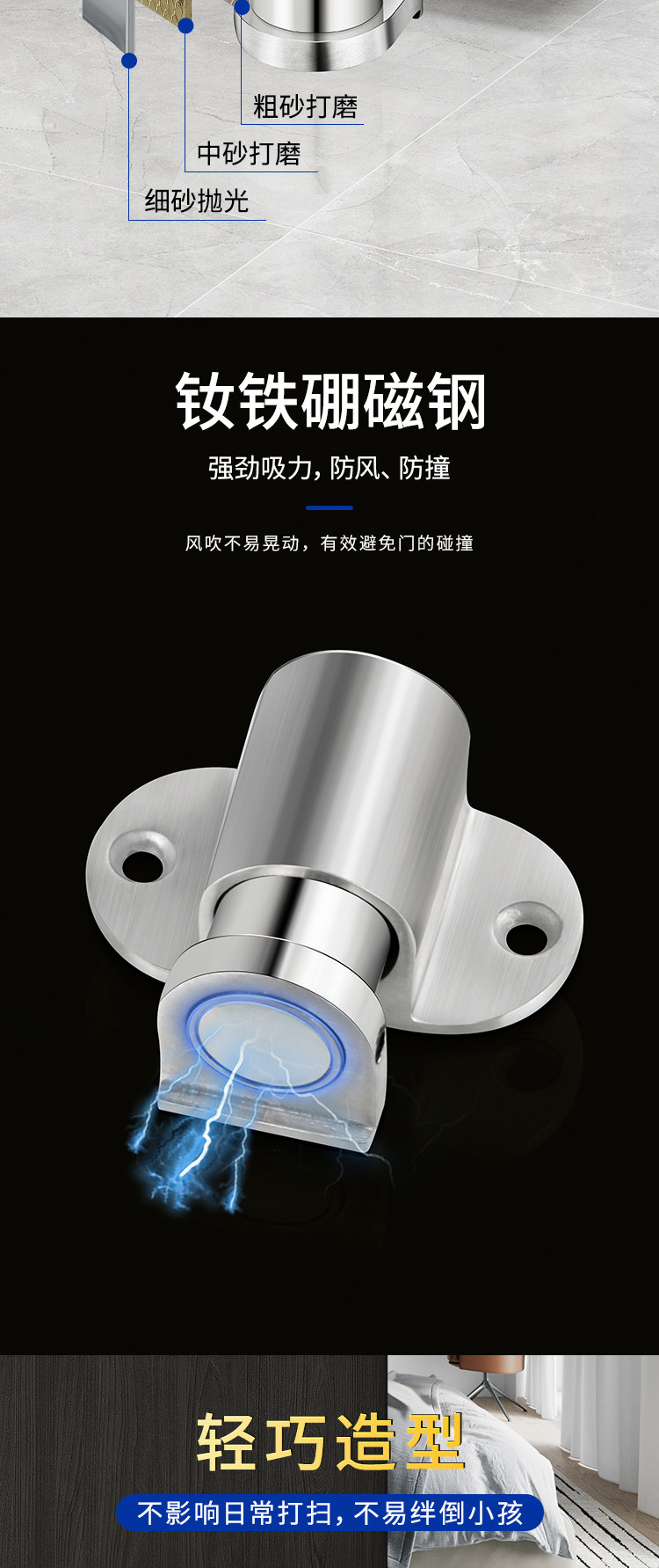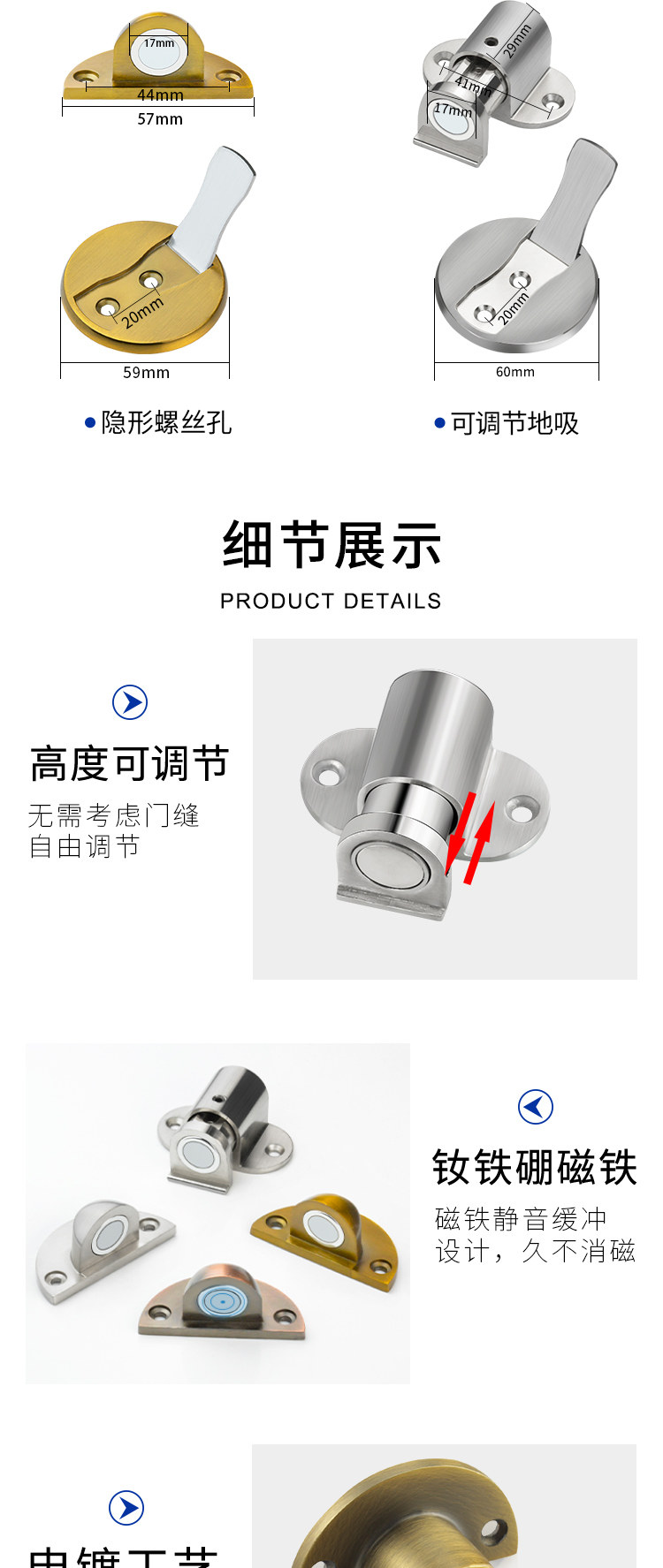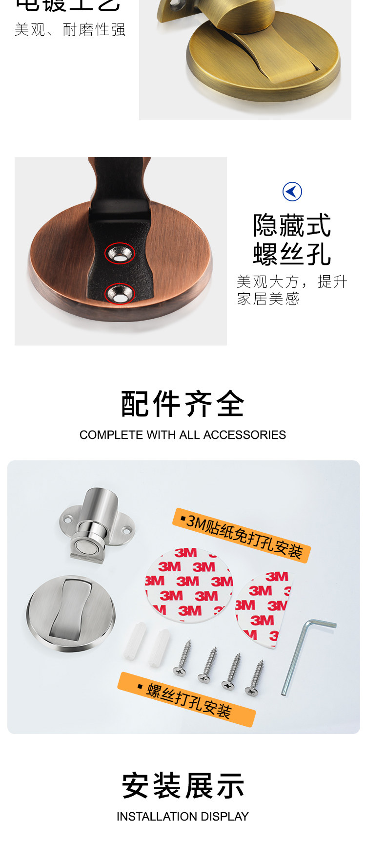 Floor-Mounted Door Stopper, No-Drill Installation, New Anti-Collision Invisible Door Stopper, Bathroom Door Stopper, Strong Magnetic Door Stopper Behind the Door