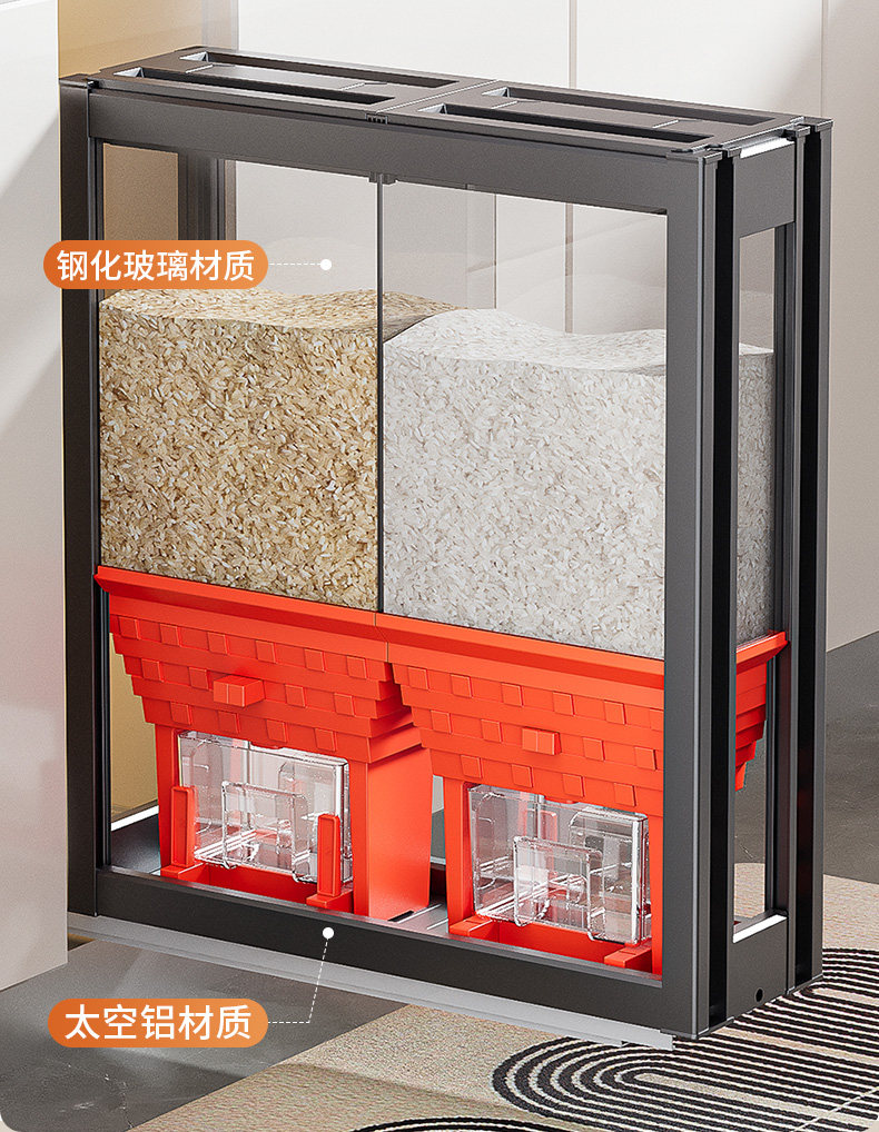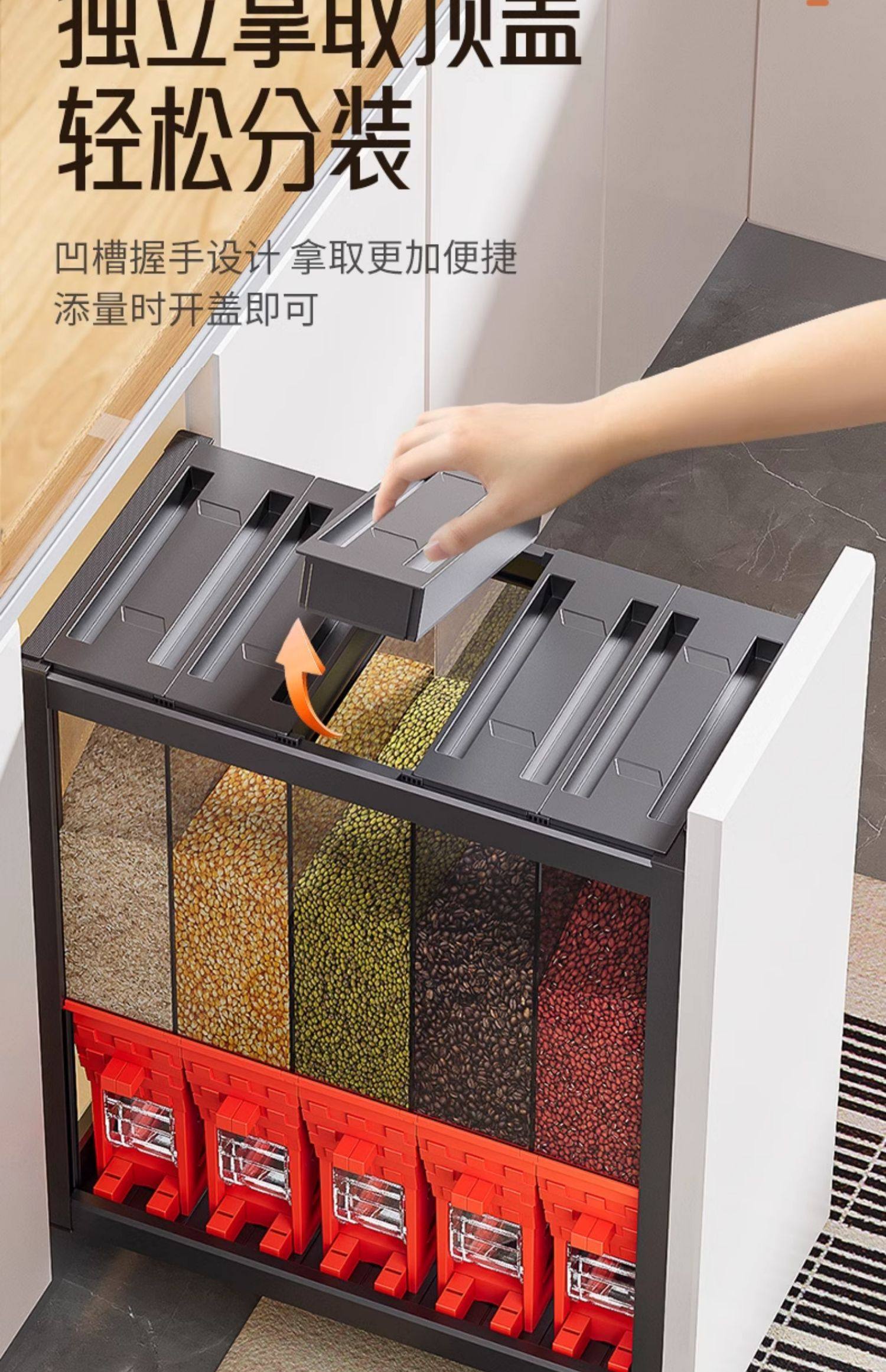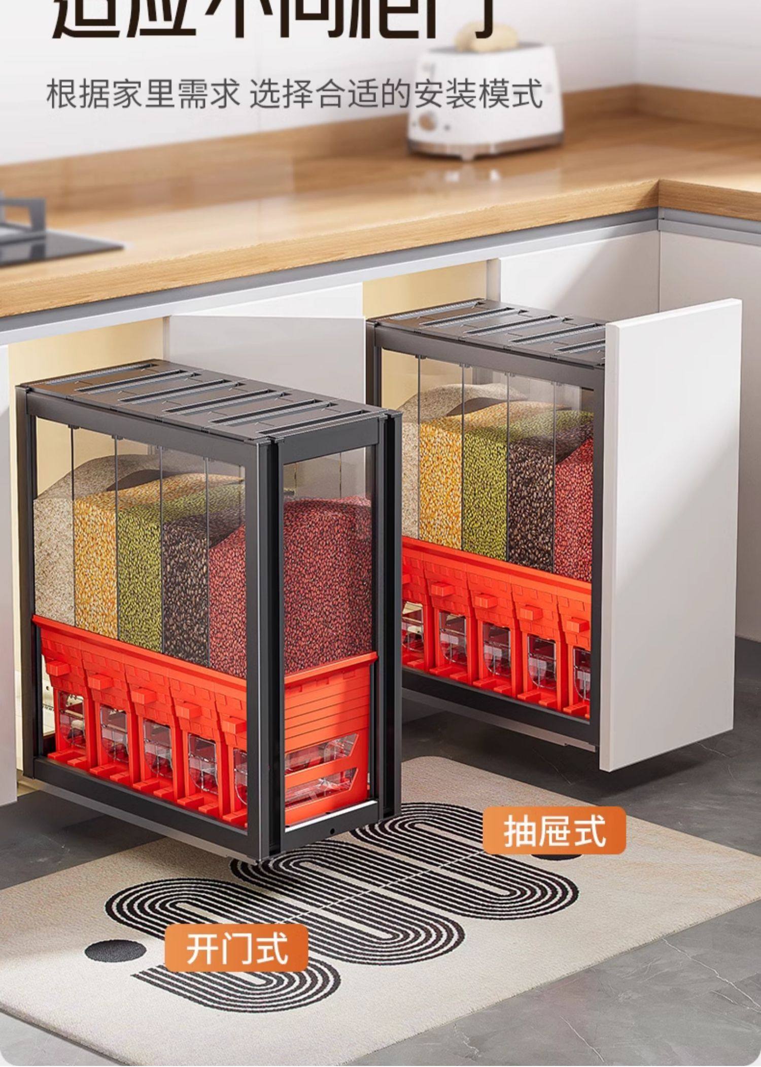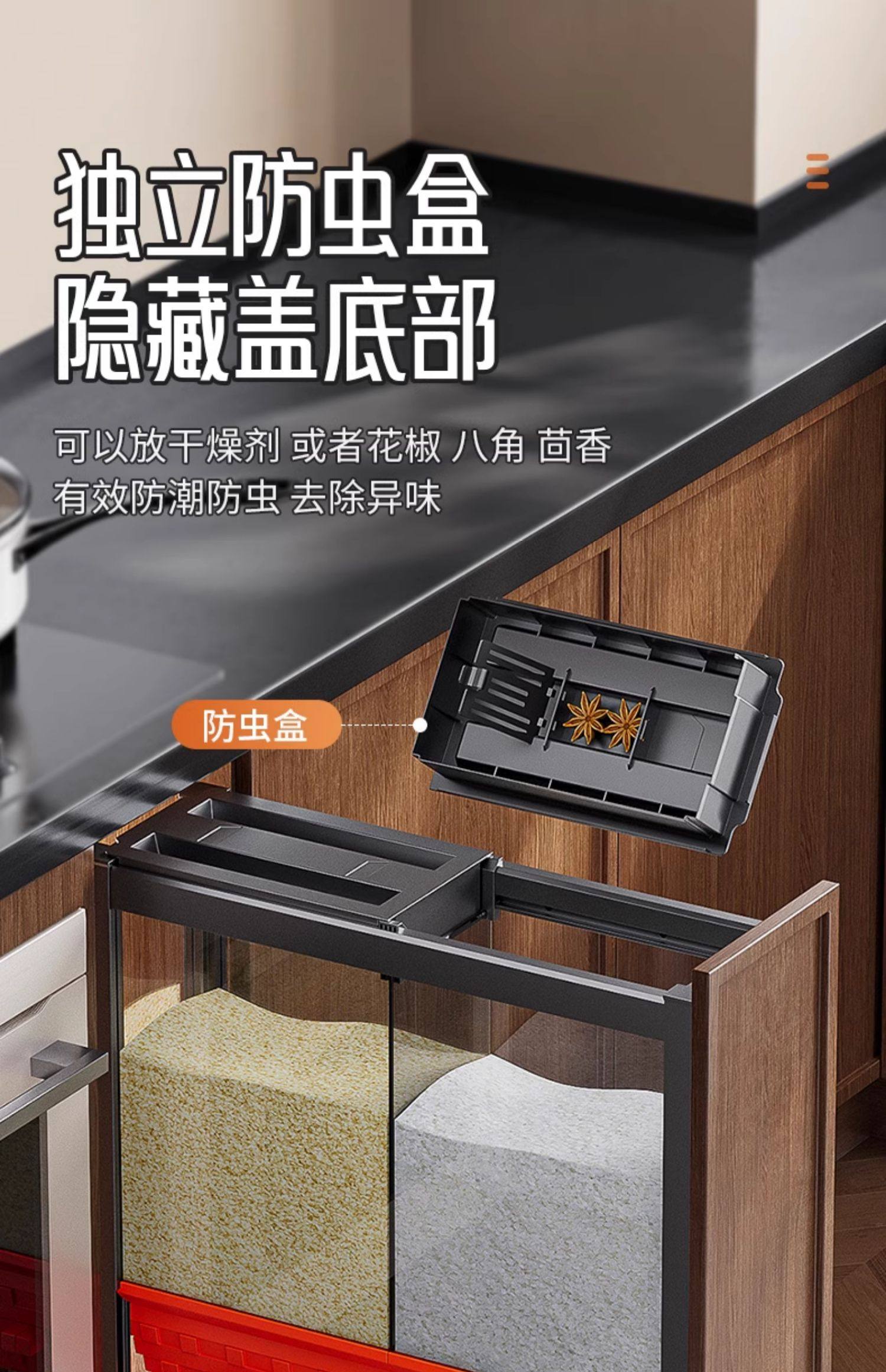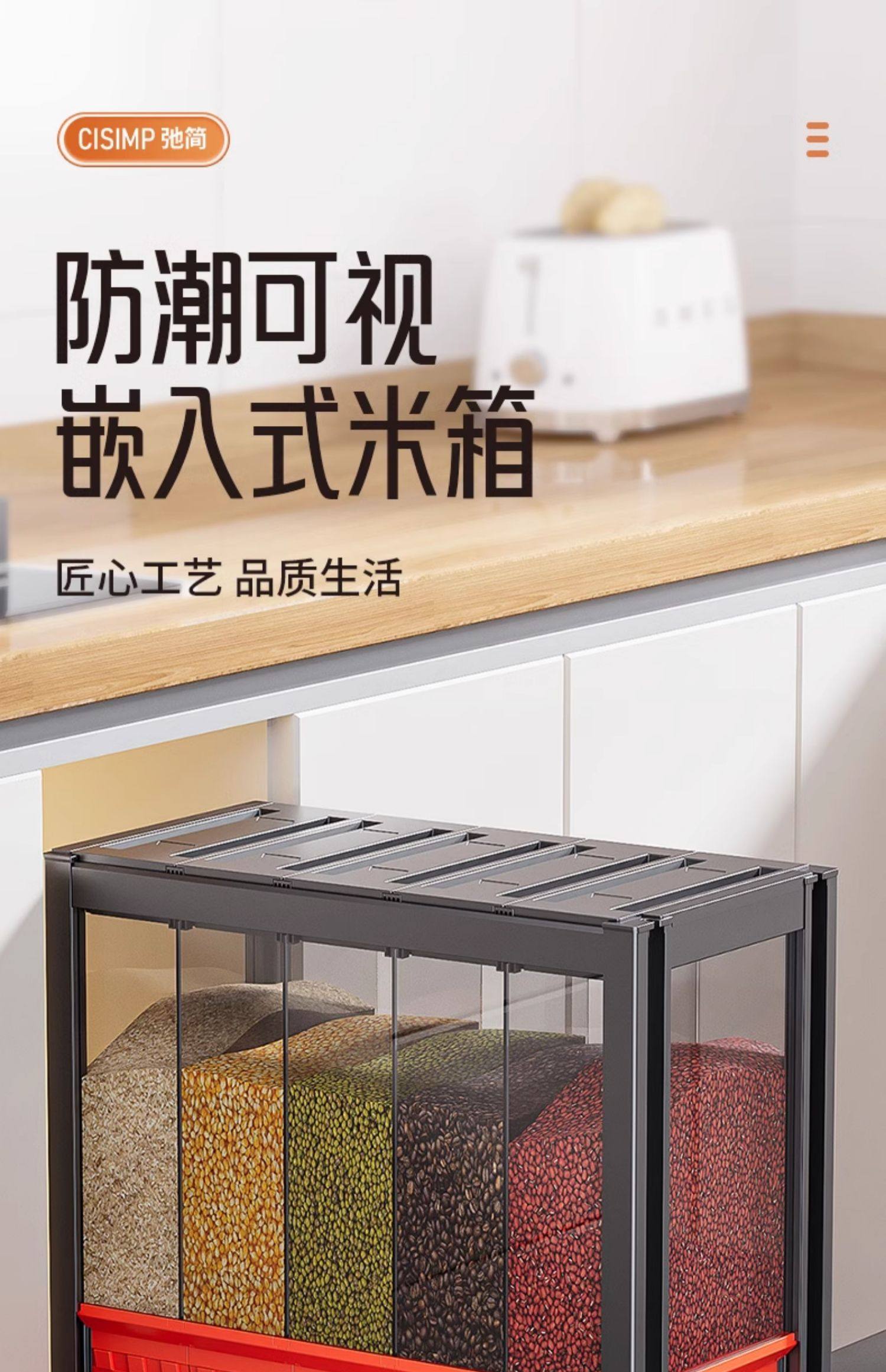 Cisimp Simple Rice Storage Basket Kitchen Cabinet Pull-Out Rice Container Embedded Rice and Flour Box Large Capacity Rice Cabinet for Home Use