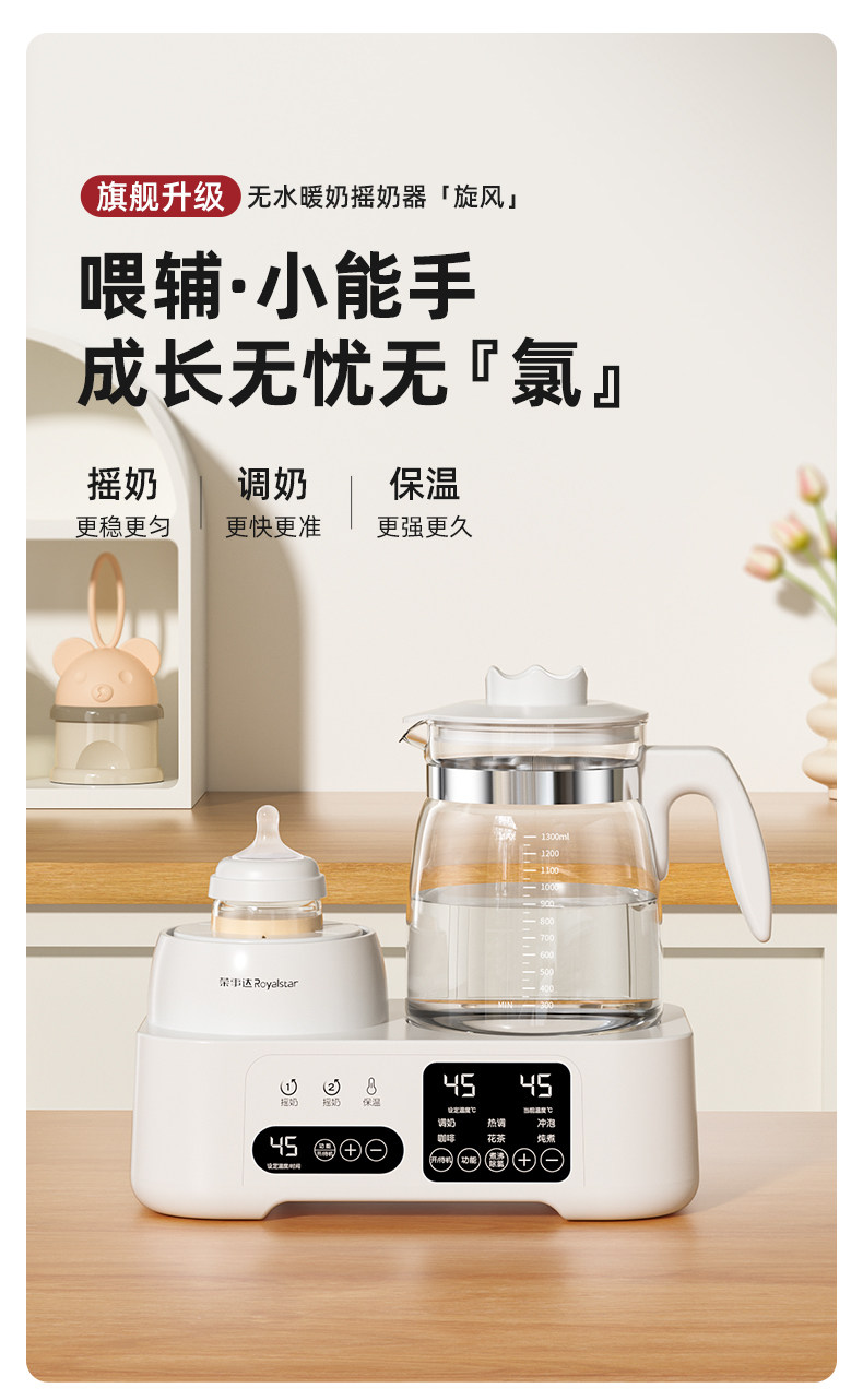 Royalstar Milk Shaker and Constant Temperature Kettle 2-in-1 Baby-Specific Milk Warmer and Water Boiler for Home Use