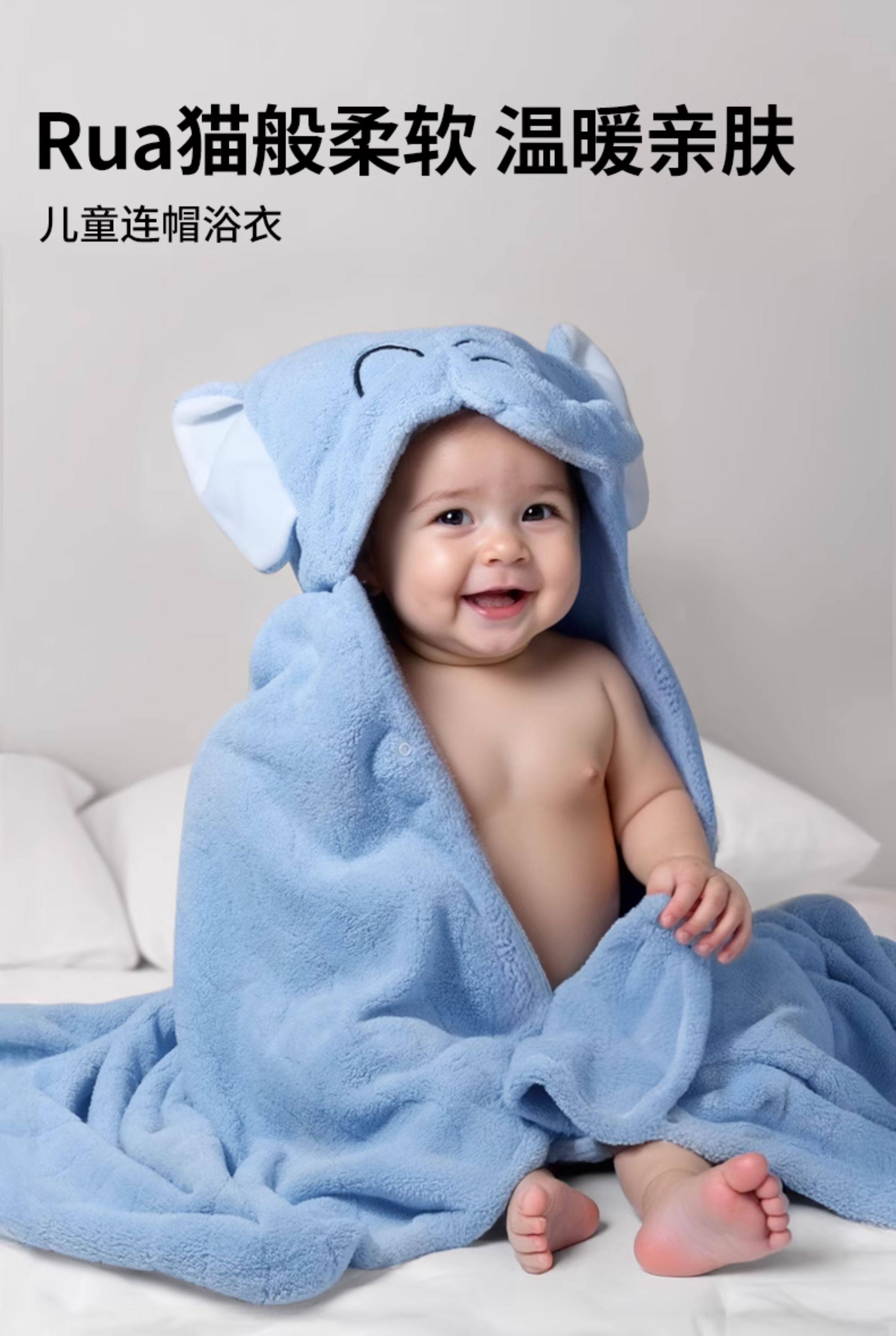 2024 Children's Bathrobe Women's Autumn and Winter Newborn Baby Cloak Hooded Bath Quick-Drying Absorbent Baby Wearable Bath Towel