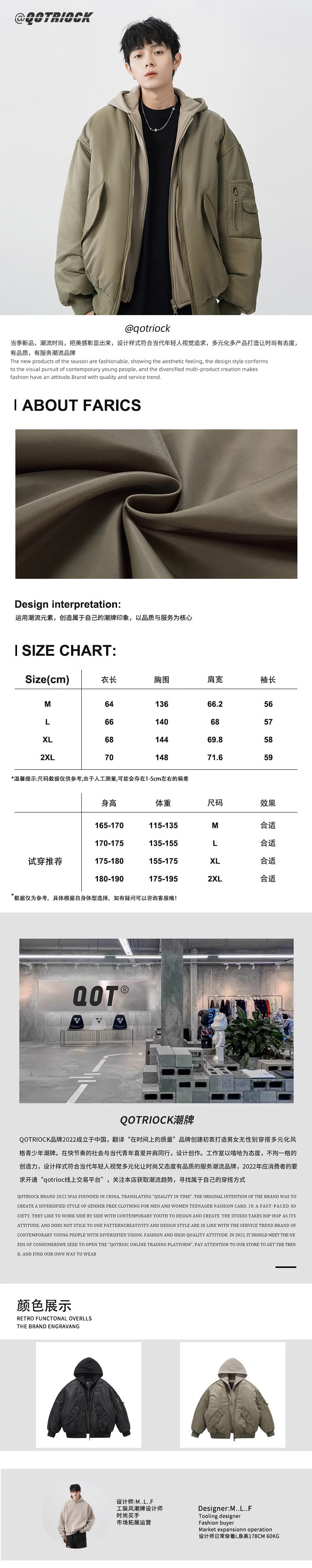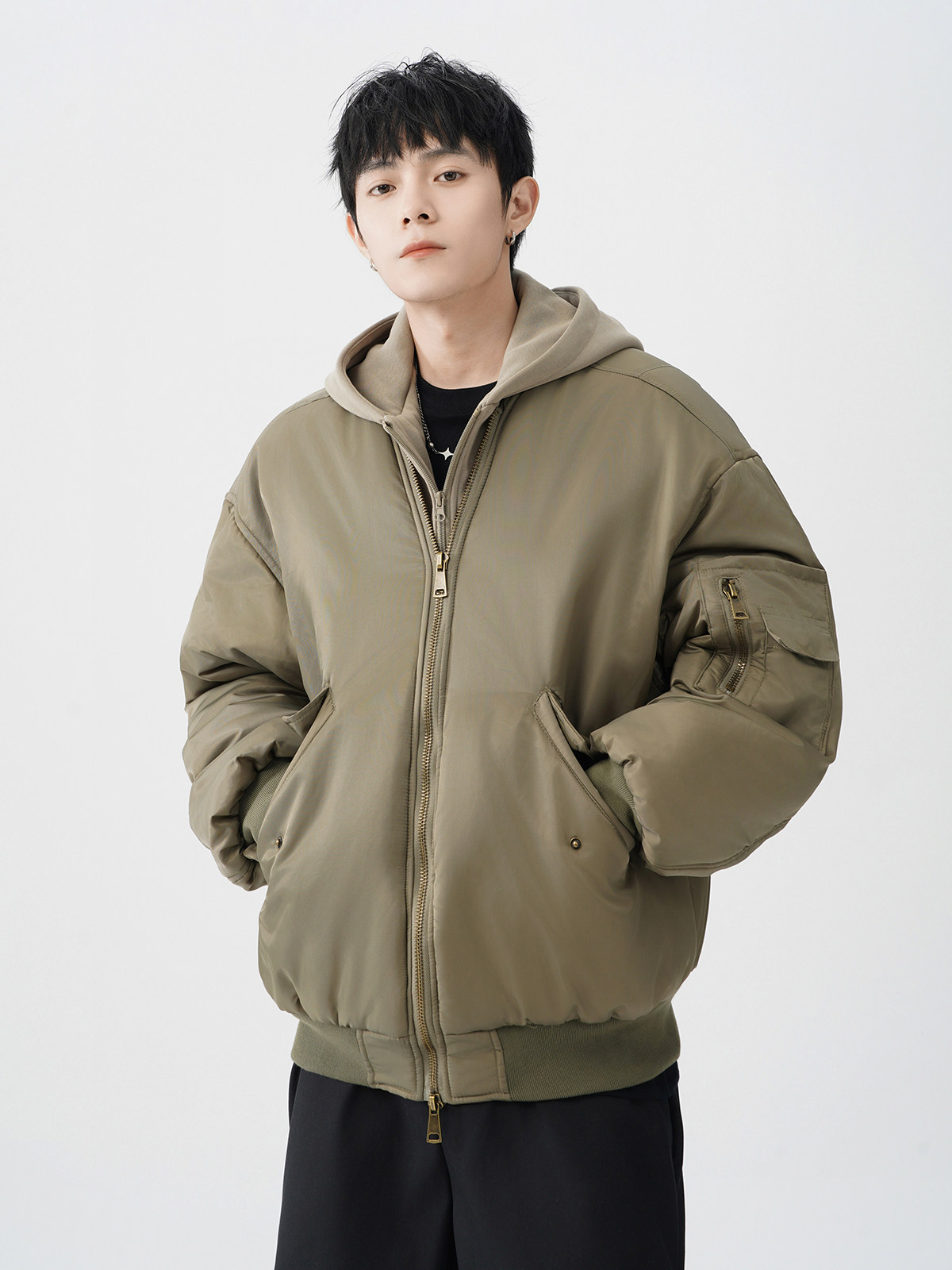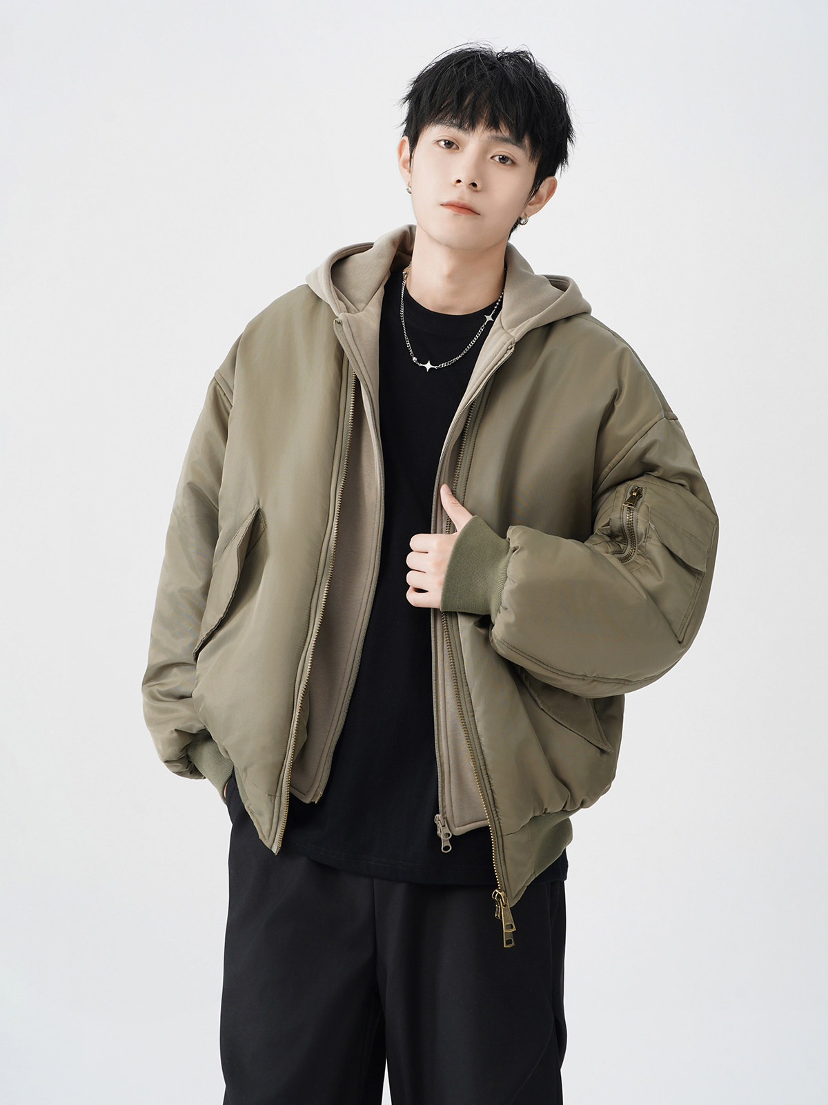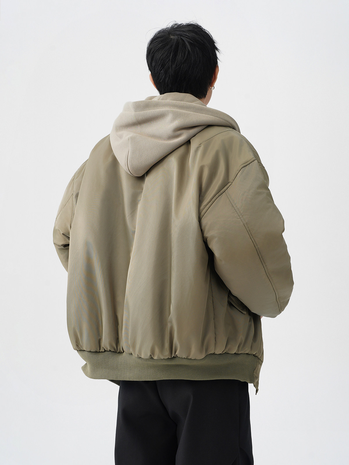 American High Street Style Faux Two-Piece Flight Jacket Cotton Coat for Men and Women, Winter Trendy Brand Design Cotton Clothing, Loose and Versatile Jacket