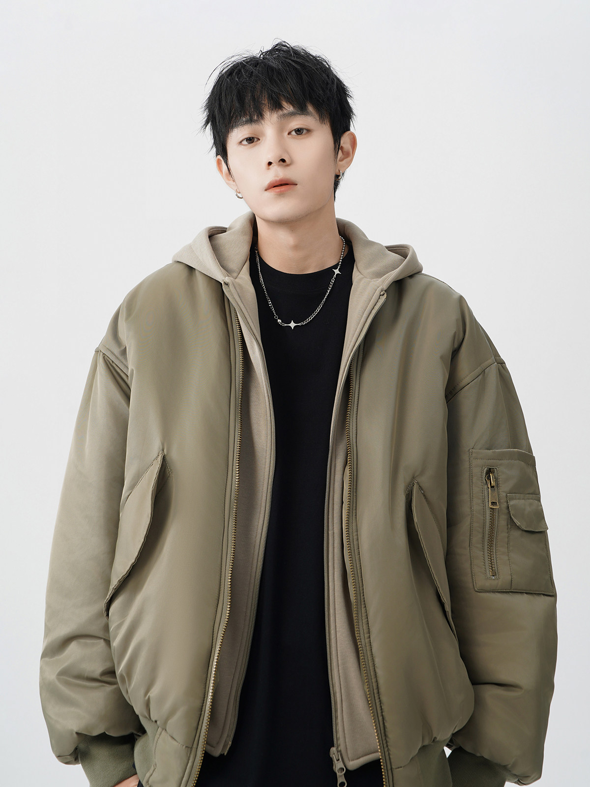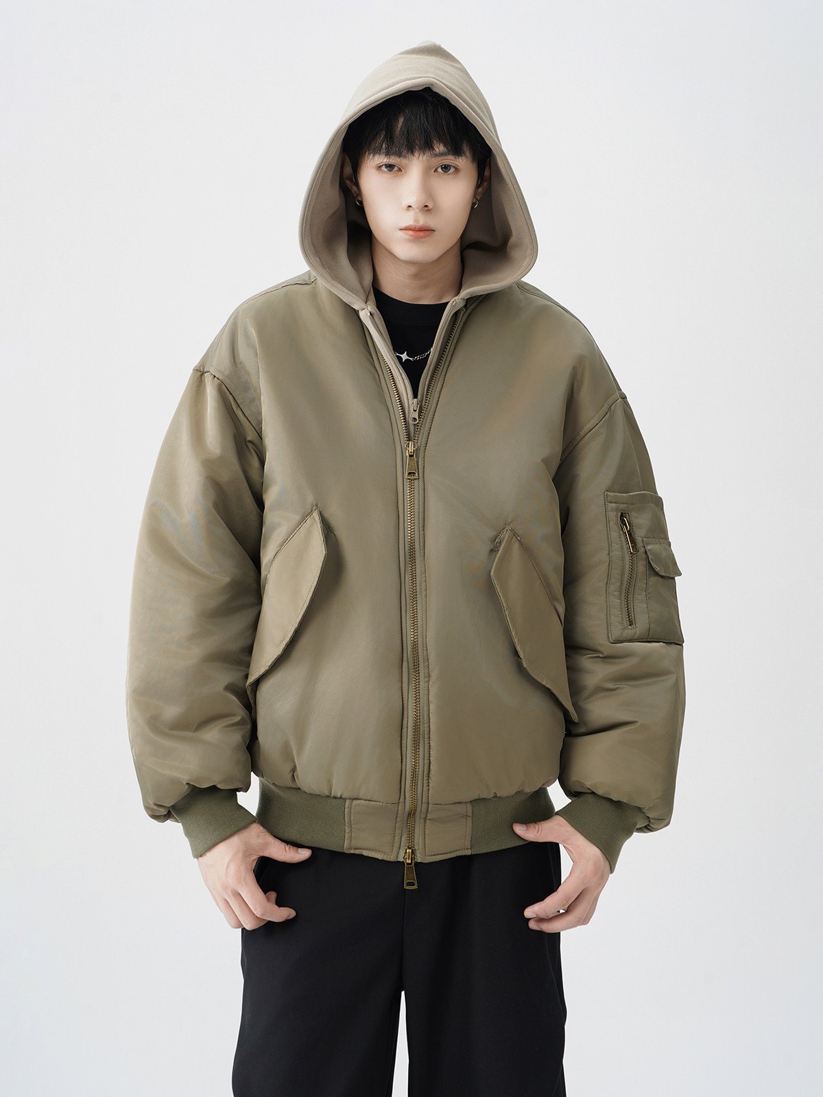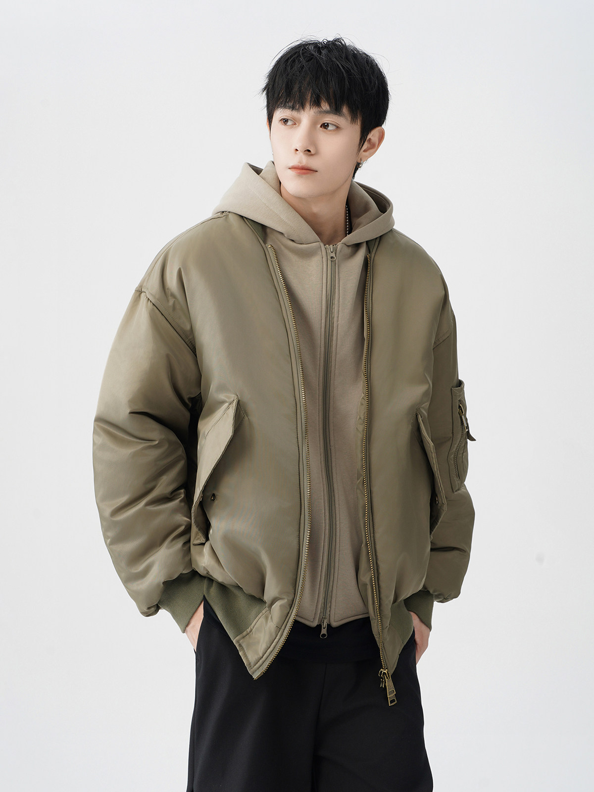 American High Street Style Faux Two-Piece Flight Jacket Cotton Coat for Men and Women, Winter Trendy Brand Design Cotton Clothing, Loose and Versatile Jacket