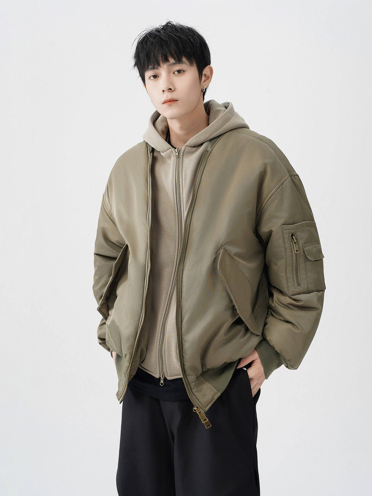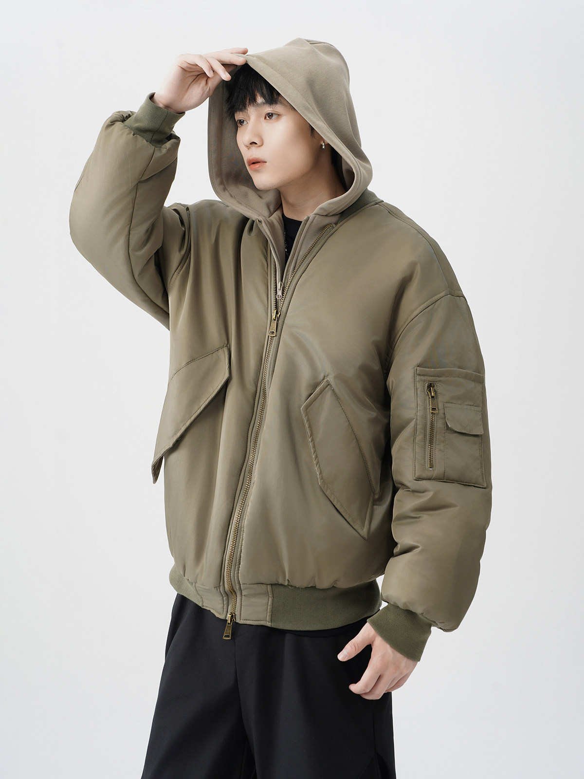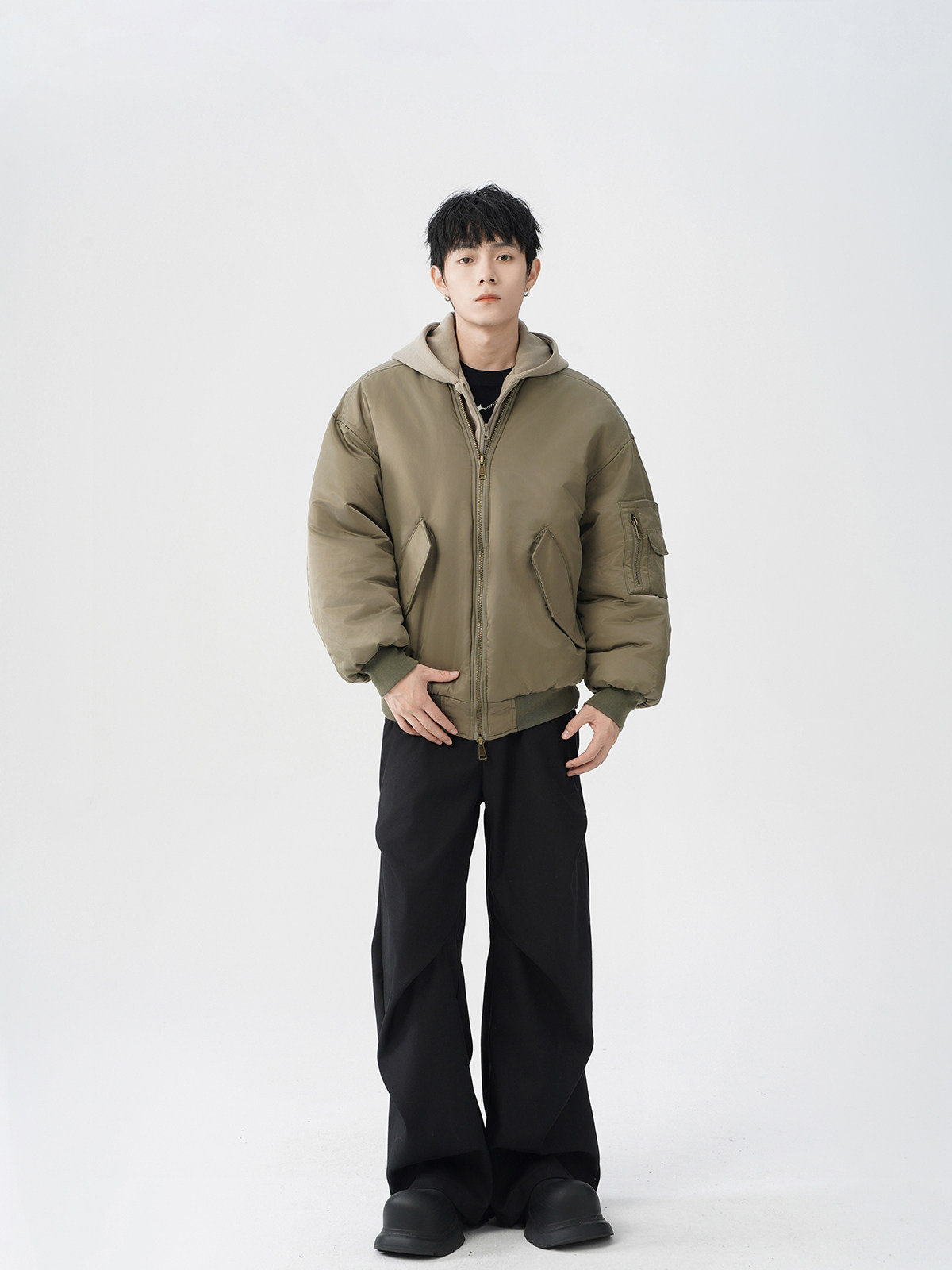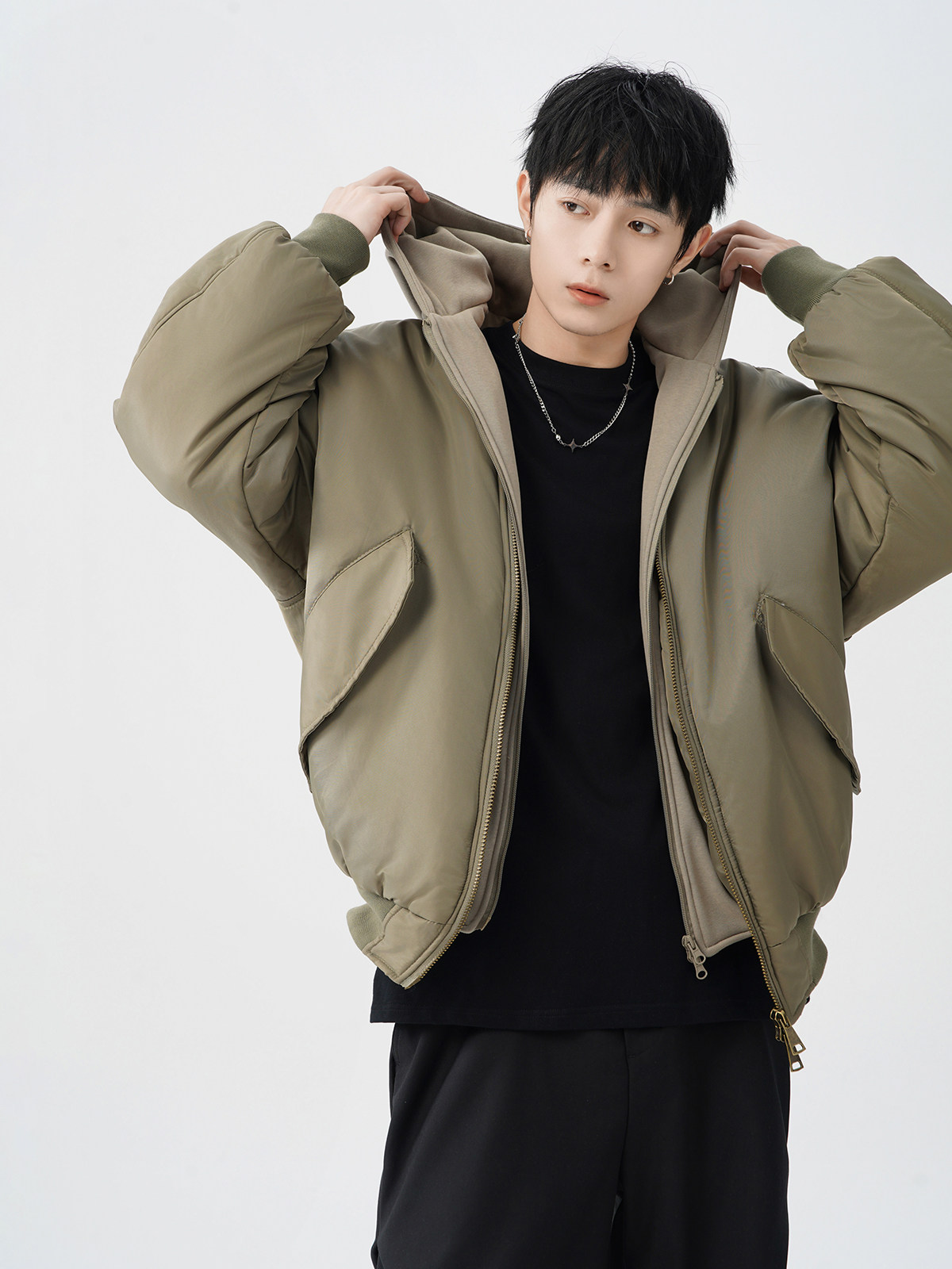 American High Street Style Faux Two-Piece Flight Jacket Cotton Coat for Men and Women, Winter Trendy Brand Design Cotton Clothing, Loose and Versatile Jacket