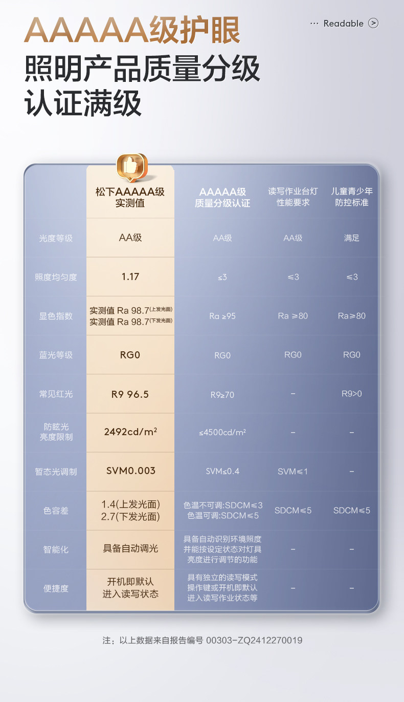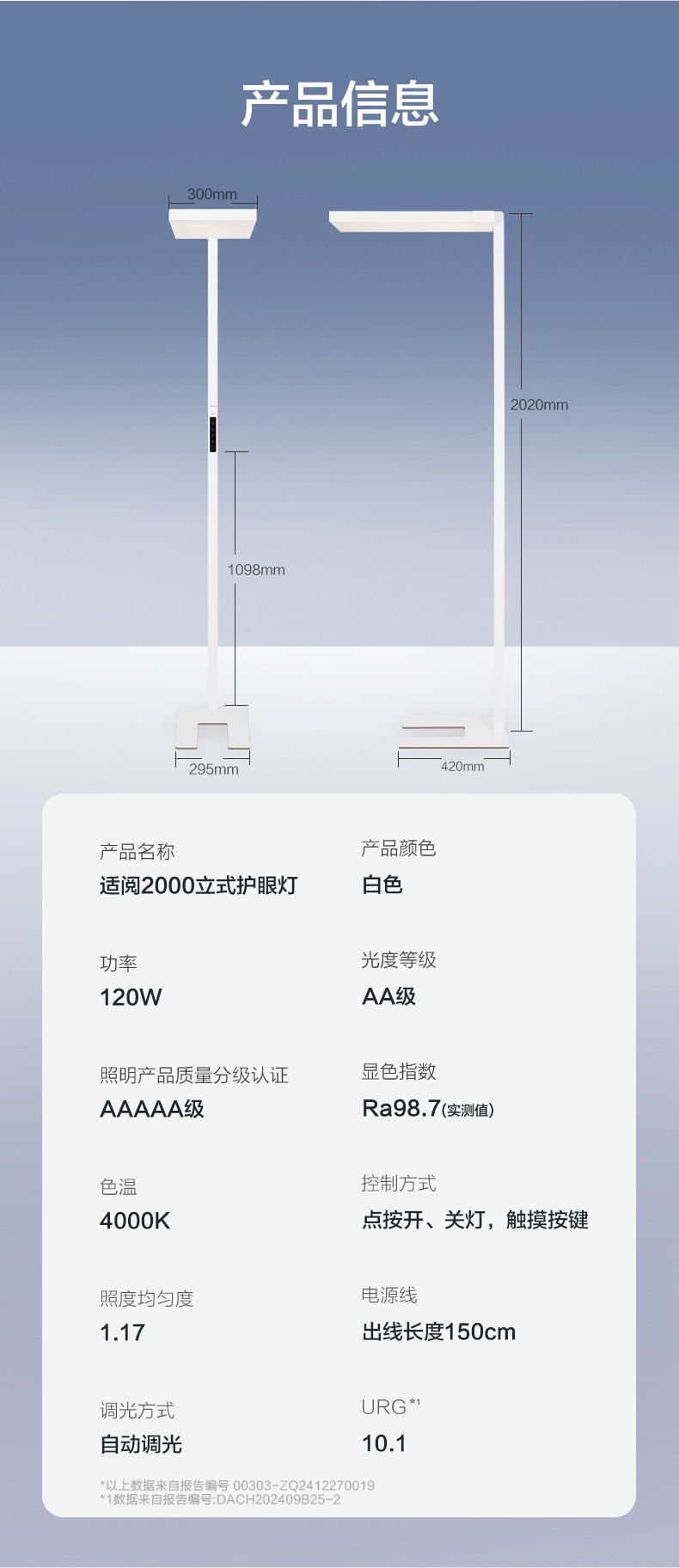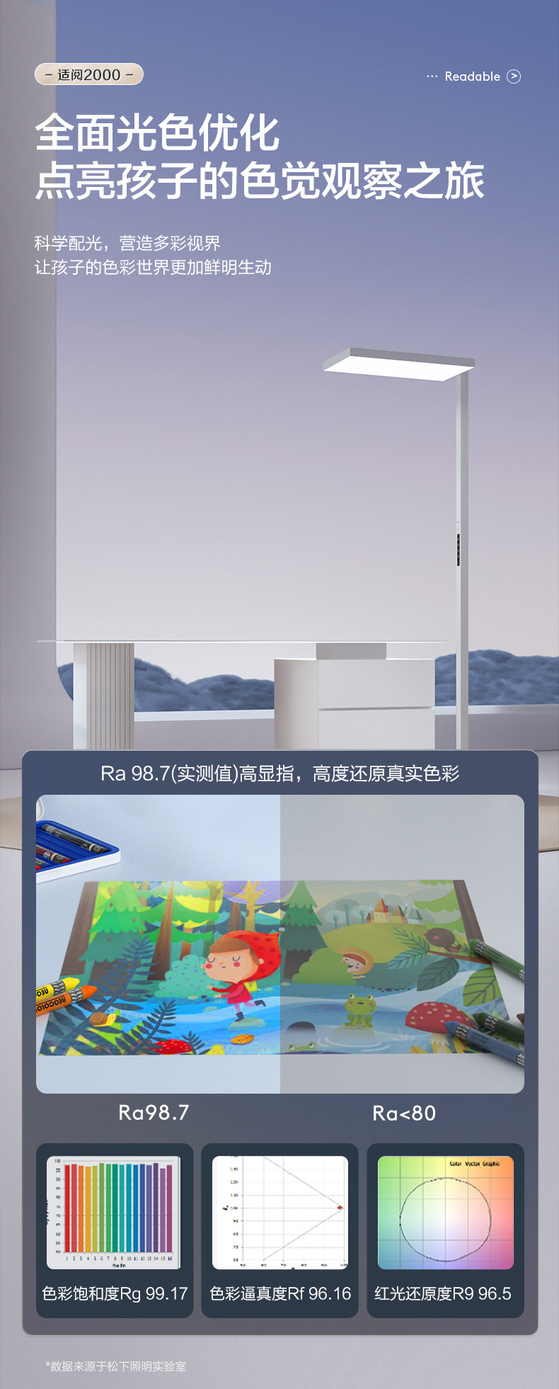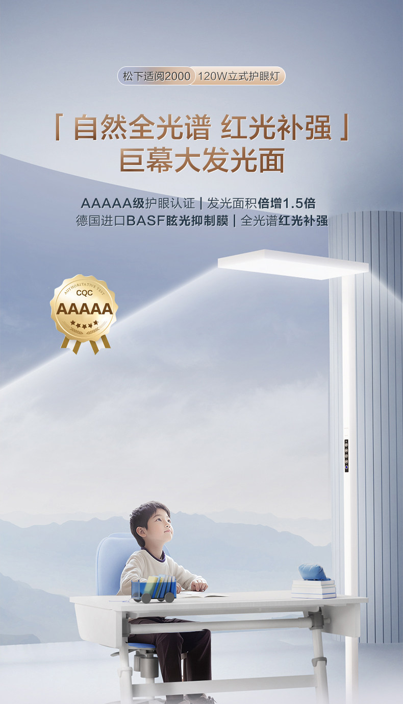 Panasonic Vertical 120W Eye-Protection Lamp for Children's Study and Reading, Desk Lamp, Full-Spectrum Floor Lamp, Pro Version