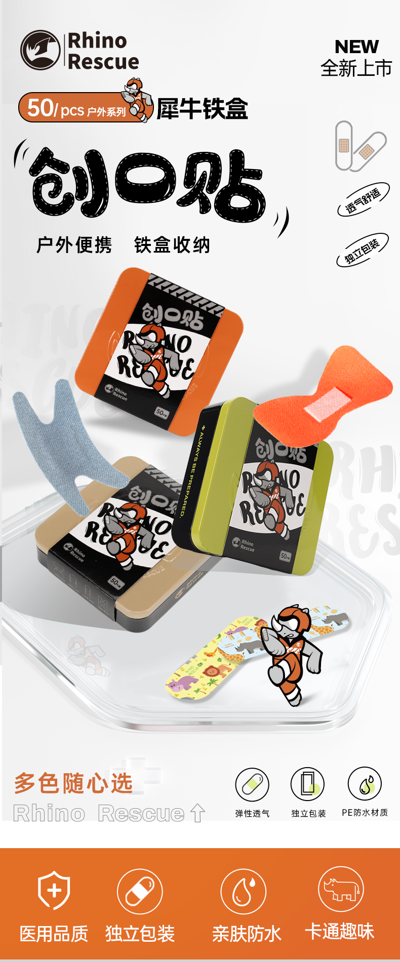 Rhino Rescue Iron Box Medical Band-Aids Breathable Household Adult Special-Shaped Band-Aids for Children