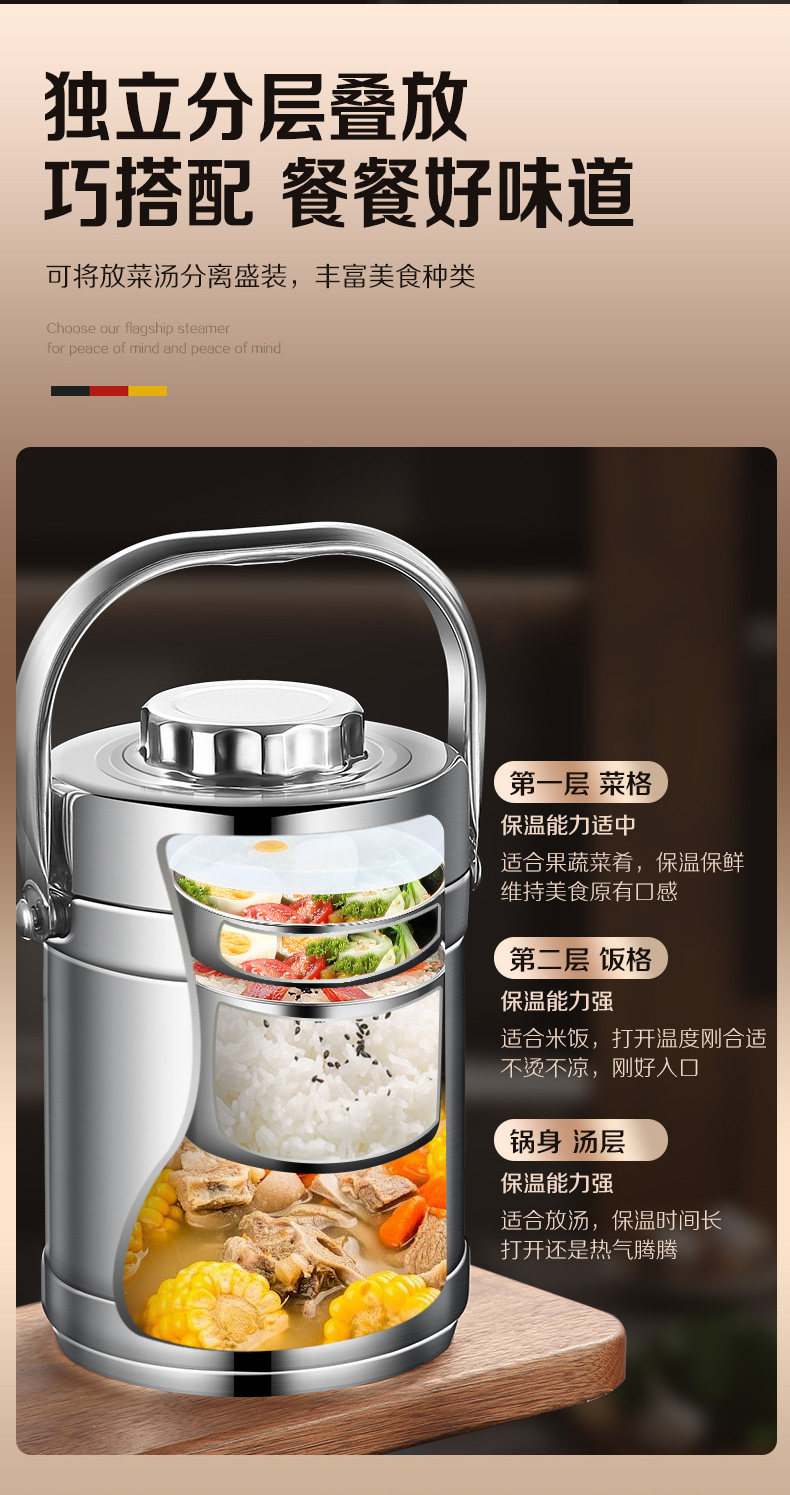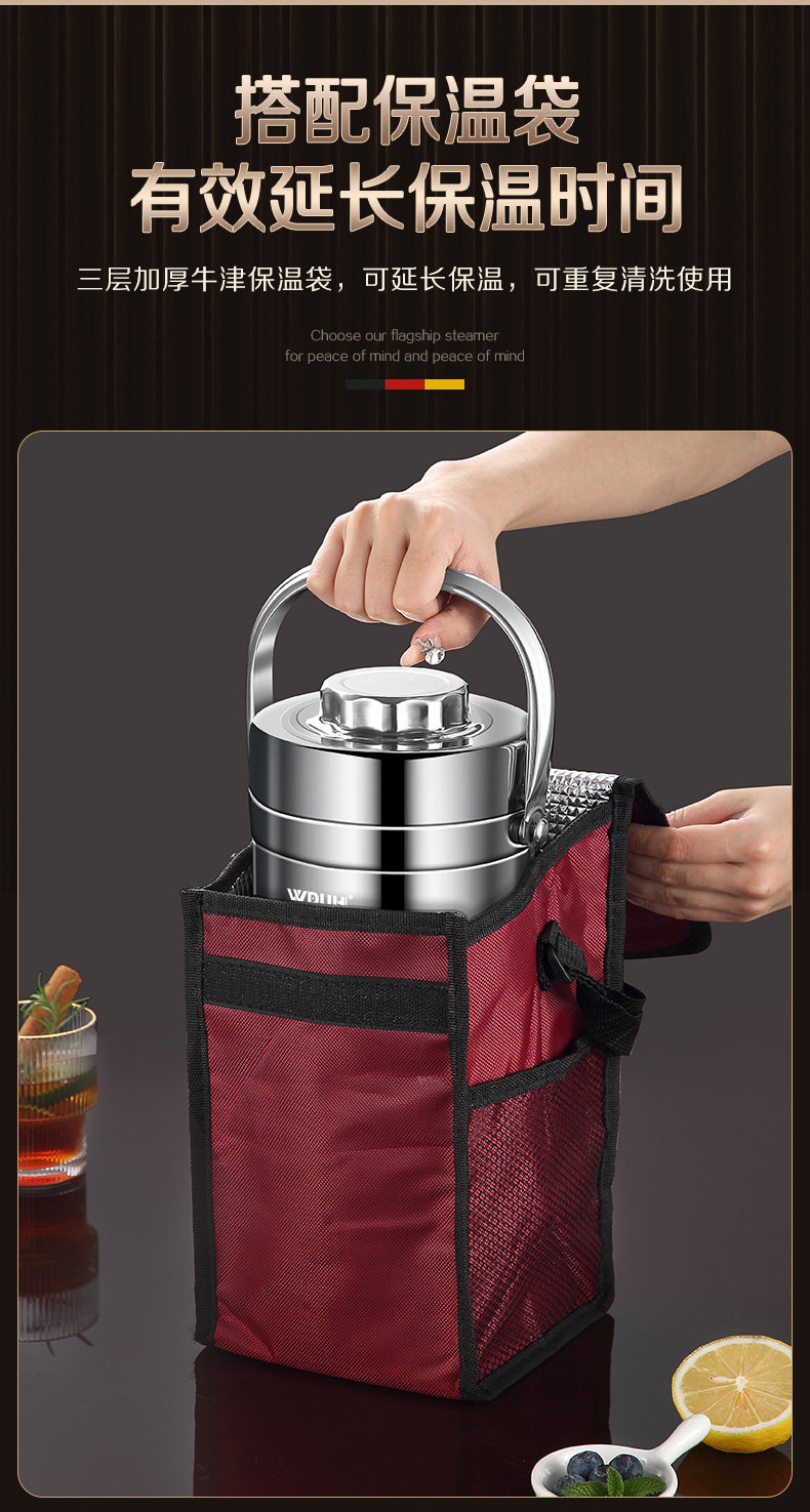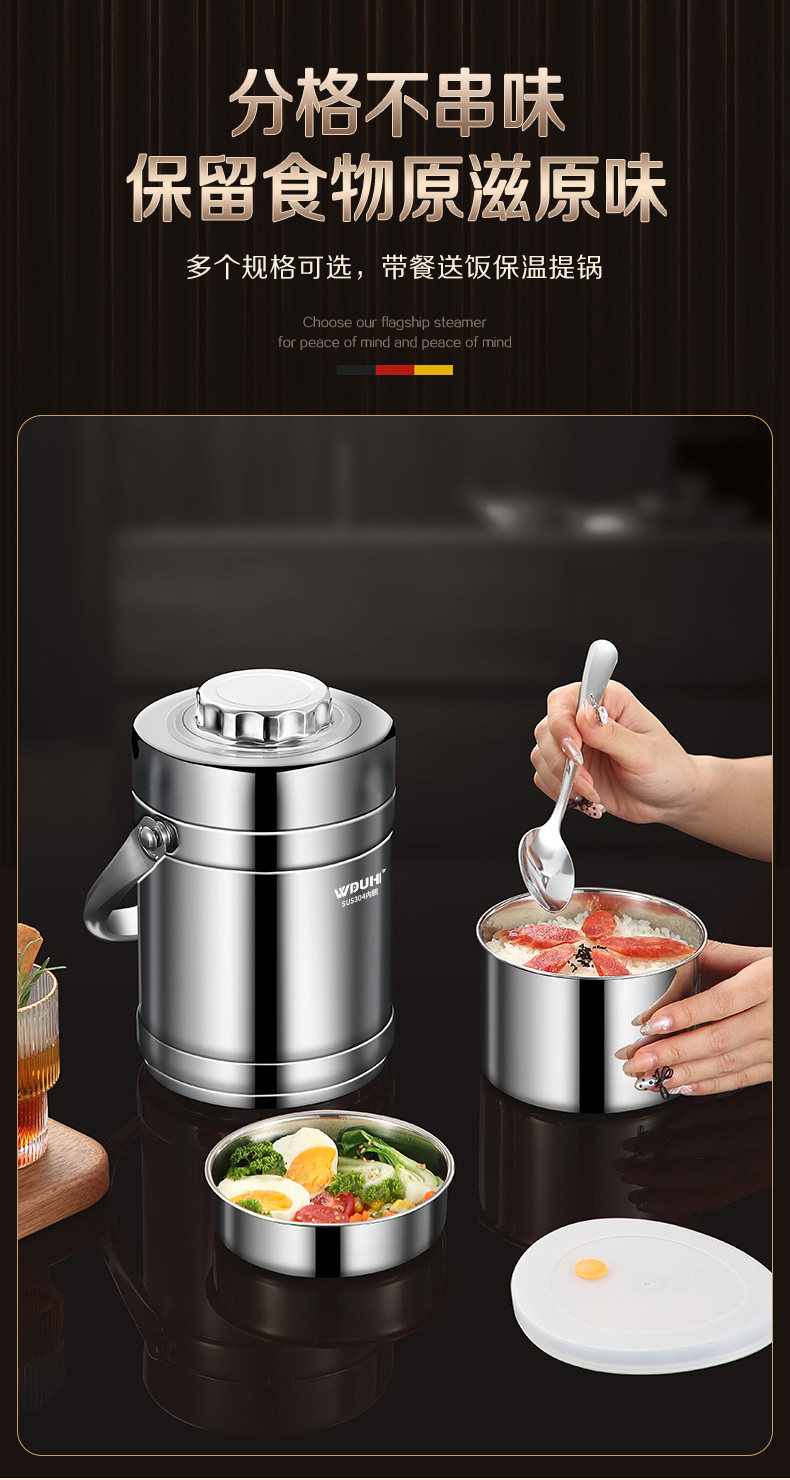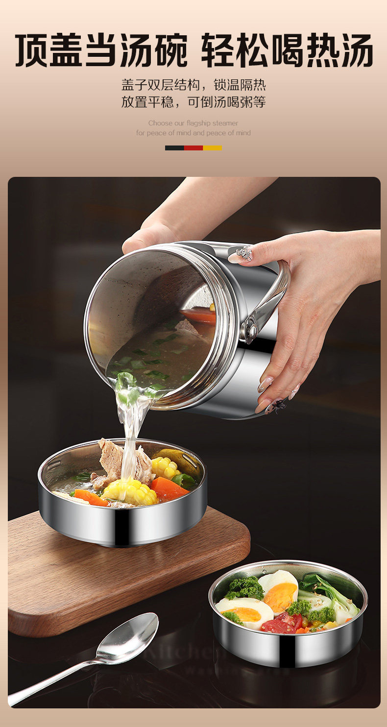 Insulated Lunch Box Stainless Steel Office Worker Student Portable Multi-Layer Large Capacity Vacuum Bucket Lunch Box Soup Pot Bowl