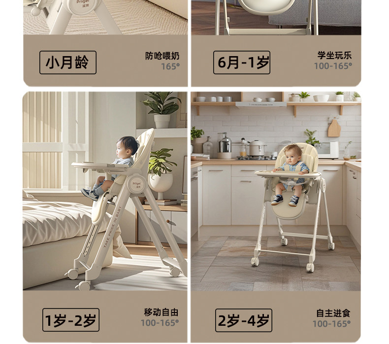 Prigel Baby Dining Chair, Infant Dining Table and Chair, Children's Home Dining Chair, Can Sit and Lie Down, Portable, Multi-Functional Learning Chair