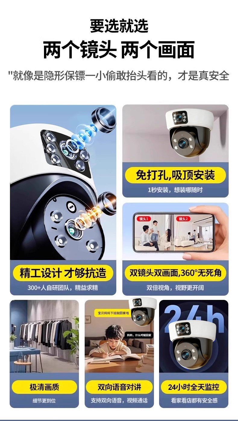 Color Classification Single-Lens Wifi Version [No Punching + 360 Panoramic View + Voice Intercom + Full-Color Night Vision + Free Playback],Single-Lens Wifi Version + Power Outage Monitoring [No Punching + 360 Panoramic View + Voice Intercom + Full-Color Night Vision + Free Playback],Dual-Lens Wifi Version [No Punching + 360 Panoramic View + Voice Intercom + Full Color Night Vision + Free Playback],Dual-Lens Wifi Version + Power Outage Monitoring [No Punching + 360 Panoramic View + Voice Intercom + Full Color Night Vision + Free Playback],[Free 99 Years of Traffic] Dual-Lens 4g Version [No Punching + 360 Panoramic View + No Network Required + Full-Color Night Vision + Free Playback],[Free 99 Years of Traffic] Dual-Lens 4g Version + Power Outage Monitoring [No Punching + 360 Panoramic View + No Network Required + Full Color Night Vision + Free Playback]