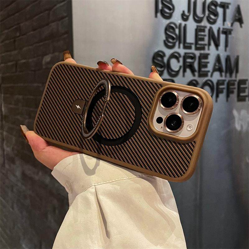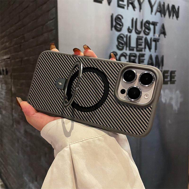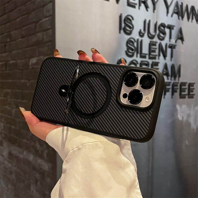 Carbon Fiber Texture Matte Magnetic Apple 16 Pro Max Kevlar Pattern Phone Case Suitable for iPhone 15 Pro with Metal Stand 14 Plus with Lens Film 13 Anti-Slip 12/11 Protective Case