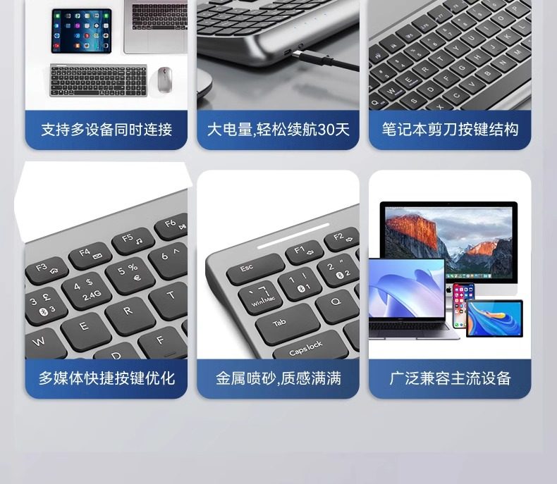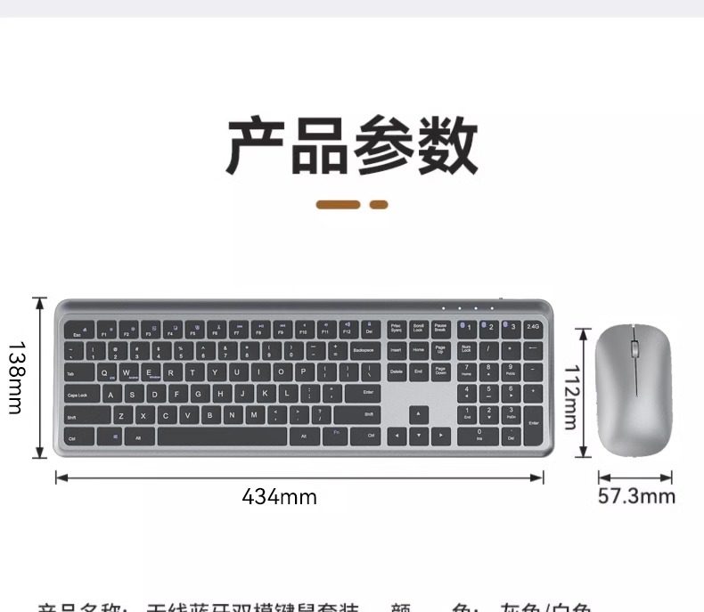 | Color Classification | Metallic Silver [Single Keyboard] Wireless 2.4g + Bluetooth 5.0 Dual Mode + Rechargeable Design + Full System Compatibility,Metallic Silver [Keyboard and Mouse Set] Wireless 2.4g + Bluetooth 5.0 Dual-Mode + Rechargeable Design + Fully System Compatible,Metallic Gray [Single Keyboard] Wireless 2.4g + Bluetooth 5.0 Dual Mode + Rechargeable Design + Full System Compatibility,Metallic Gray [Keyboard and Mouse Set] Wireless 2.4g + Bluetooth 5.0 Dual-Mode + Rechargeable Design + Fully System Compatible |