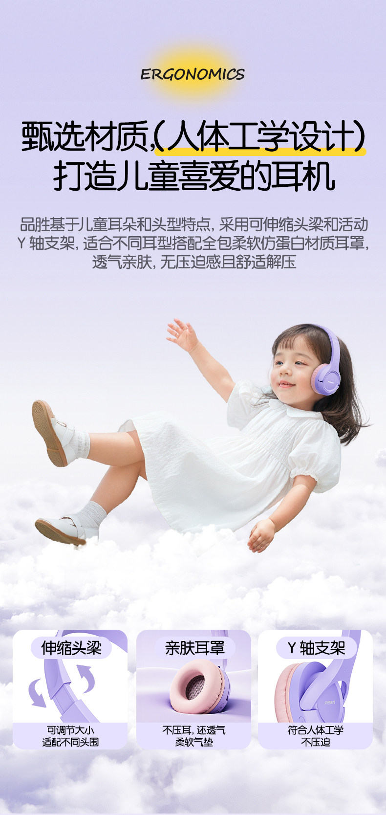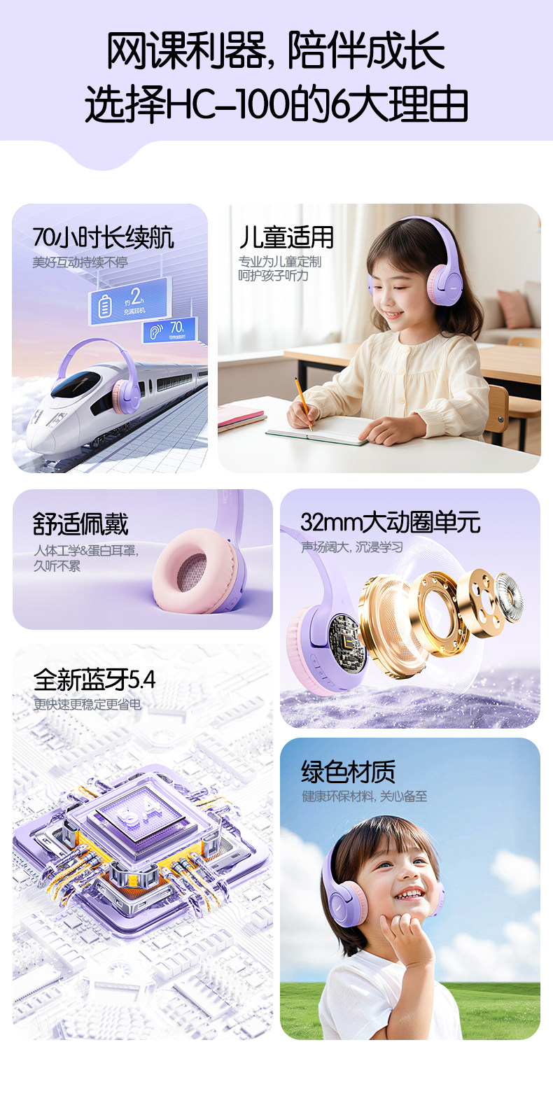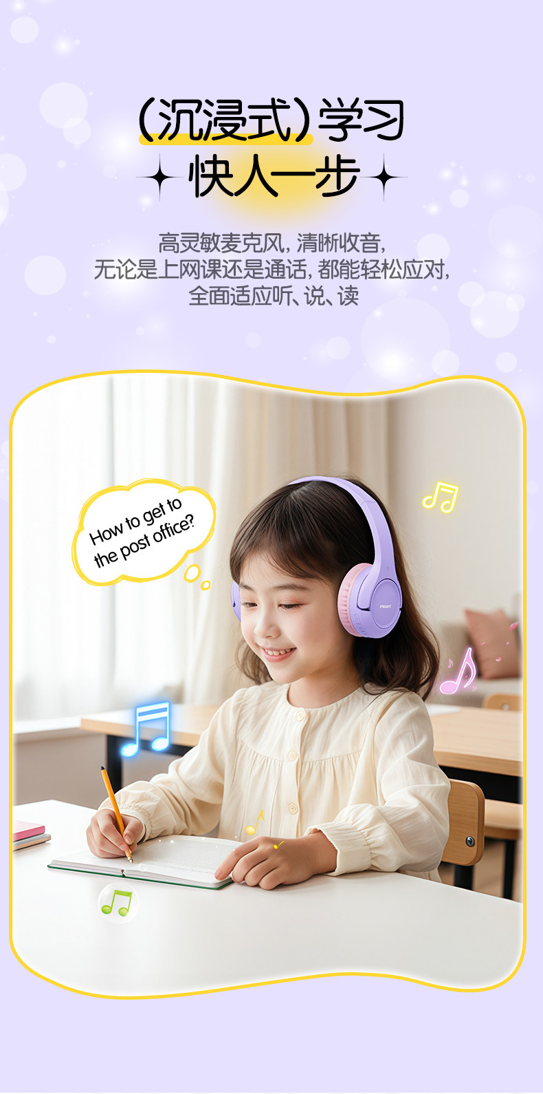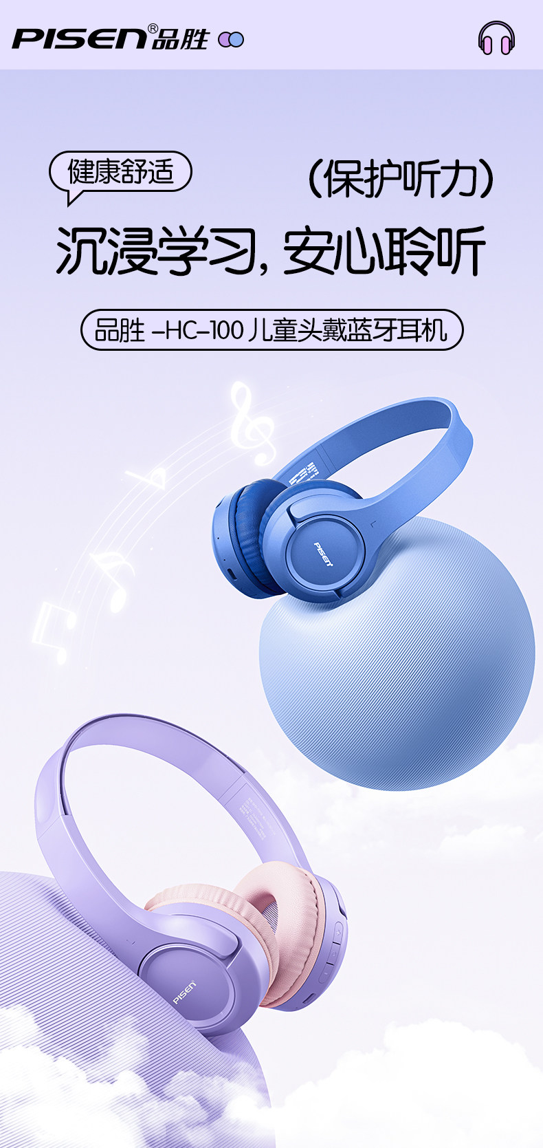 Pinsheng Children's Headphones, Over-Ear, Dedicated for Learning, Noise-Isolating, Bluetooth, Noise-Cancelling, Immersive for Students to Recite and Read