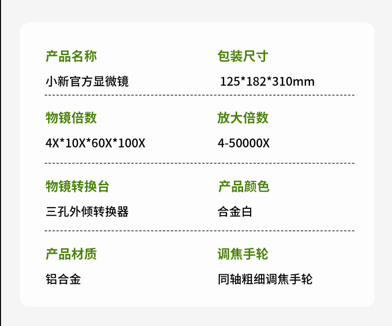 | Color Classification | Future Star[30000 Times]Visible Cells + Fine Focusing Spiral❤Contains 15 Specimens,Future Star[40000 Times]Visible Bacteria + Fine Focusing Helix❤Contains 15 Specimens,Future Star[50000 Times]Visible Bacteria + Fine Focusing Helix❤Contains 15 Specimens,The Following Is the Flagship Version★With Vernier Calipers - Universal for Biological Research,Future Star Ultimate Edition[30000 Times]Visible Cells + Vernier Caliper + 15 Specimens,Future Star Ultimate Edition[40000 Times]Visible Bacteria + Vernier Caliper + 15 Specimens,Future Star Ultimate Edition[50000 Times]Visible Bacteria + Vernier Caliper + 15 Specimens,Future Star Ultimate Edition[50000 Times]Visible Bacteria + Vernier Caliper + 15 Specimens + Electronic Eyepiece,Future Star Ultimate Edition[50000 Times]Visible Bacteria + Vernier Caliper + 15 Specimens + Observation Screen |