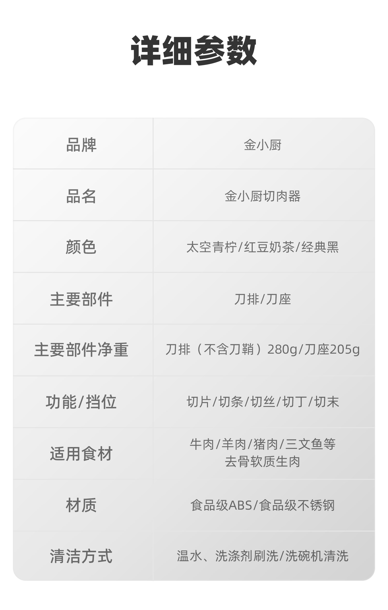 | Color Classification | Upgrade❤️Armrest Model[Space Lime]Golden Chef Meat Slicer,Upgrade❤️Armrest Model[Red Bean Milk Tea]Golden Chef Meat Slicer,Upgrade❤️Armrest Model[Pearl White]Golden Chef Meat Slicer,Upgrade❤️Armrest Model[Classic Black]Golden Chef Meat Slicer,[Space Lime]Golden Chef Meat Slicer,[Red Bean Milk Tea]Golden Chef Meat Slicer,[Classic Black]Golden Chef Meat Slicer,--------The Following Is the Brand Promotion Sku-------Do Not Shoot,Golden Chef Meat Slicer❤️Innovative Brand of Household Fresh Meat Slicers,18 Slices Per Knife★Fresh Meat Slices Can Be Cut★ Fresh Shredded Meat★ Fresh Diced Meat★ Fresh Minced Meat |