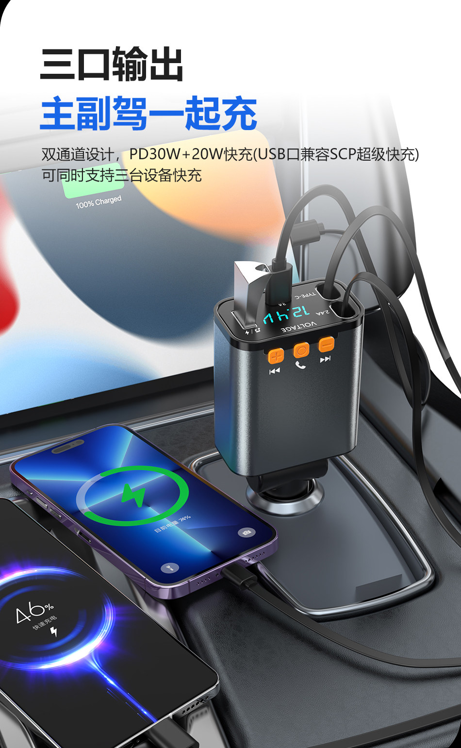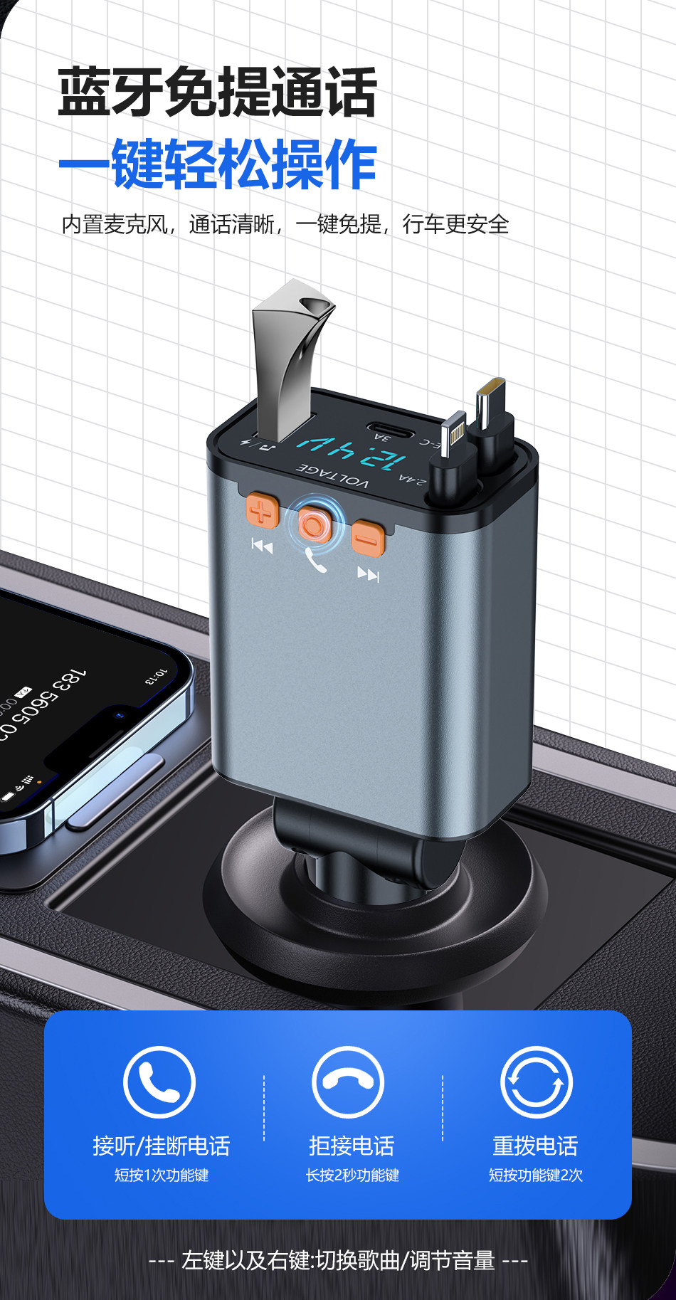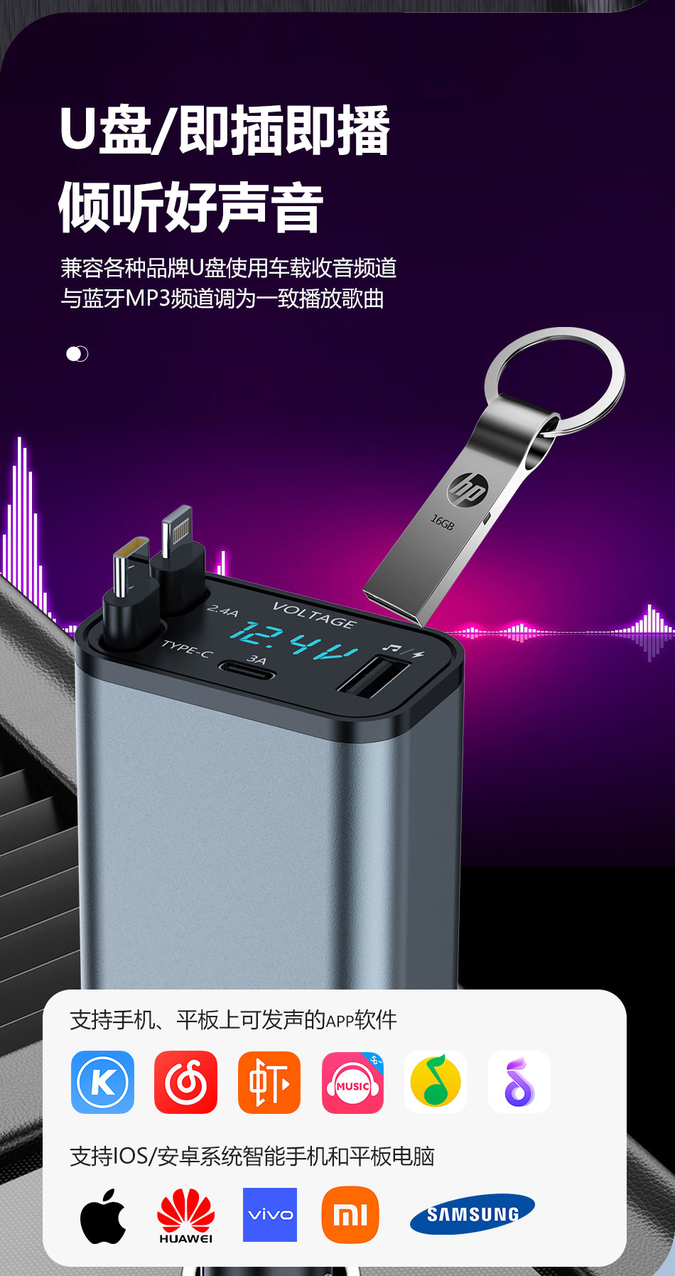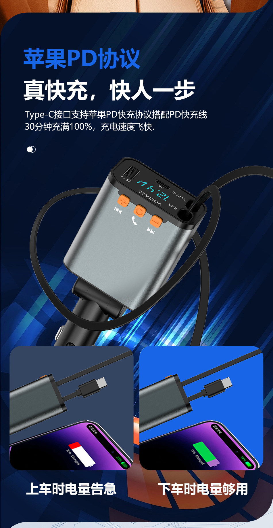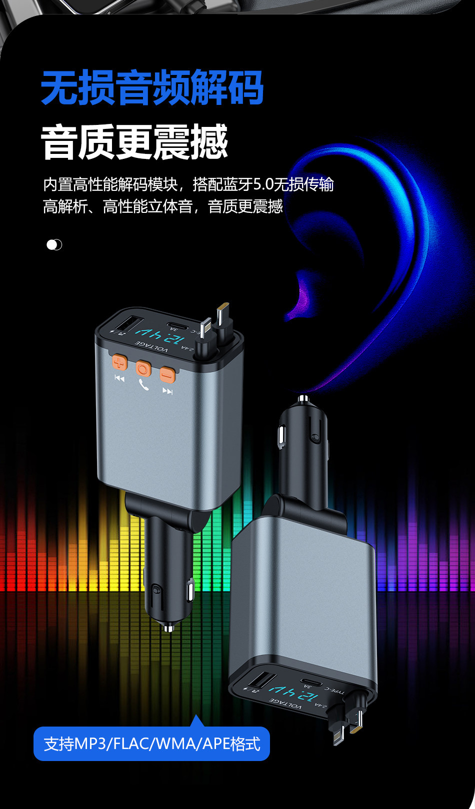 Car Bluetooth Receiver Lossless Sound Quality Mp3 Player Car Aux Converter Cigarette Lighter Super Fast Charging