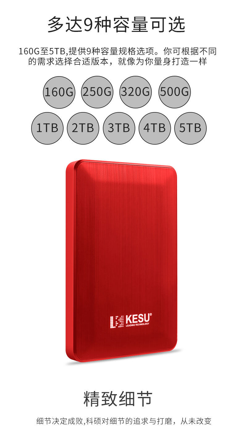 Keshuo Mobile Hard Drive 1t Mobile Phone Computer 2t Hard Drive Mobile High-Speed 320g Encrypted Mechanical Hard Drive 500g