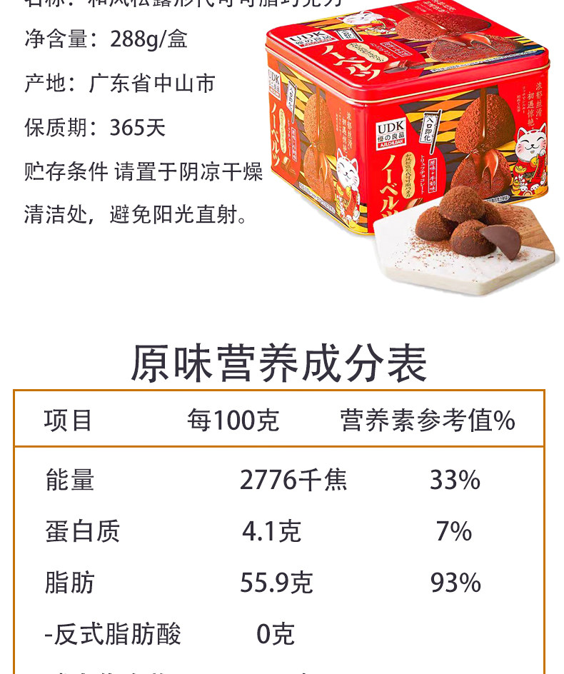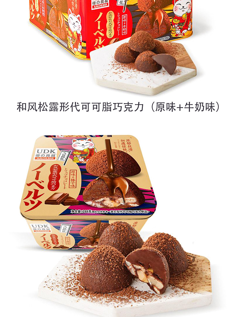 | Food Taste | Udk Truffle-Shaped Chocolate (Original + Milk Flavor) 288g*1 Box,Udk Japanese Peanut Chocolate (Original + Mellow Black) 288g*1 Box,Udk Truffle-Shaped Chocolate (Original + Hazelnut Flavor) 288g*1 Box |