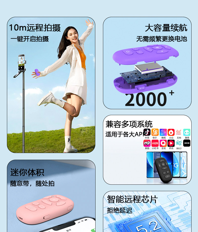 Muzhten/Mudan Zoom Remote Control Mobile Phone Remote Control Nine-Button Multi-Function Remote Control Bluetooth Camera Focus Adjustment Camera Page Turner Short Video Tool Universal for Apple and Android
