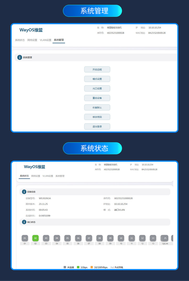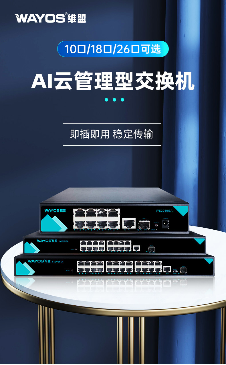 Wayos Weimeng Full Gigabit Cloud Managed Poe Switch 10-Port 18-Port 26-Port Web Mobile App Applet Remote Management Network Managed Rack-Mounted Vlan Aggregation Troubleshooting