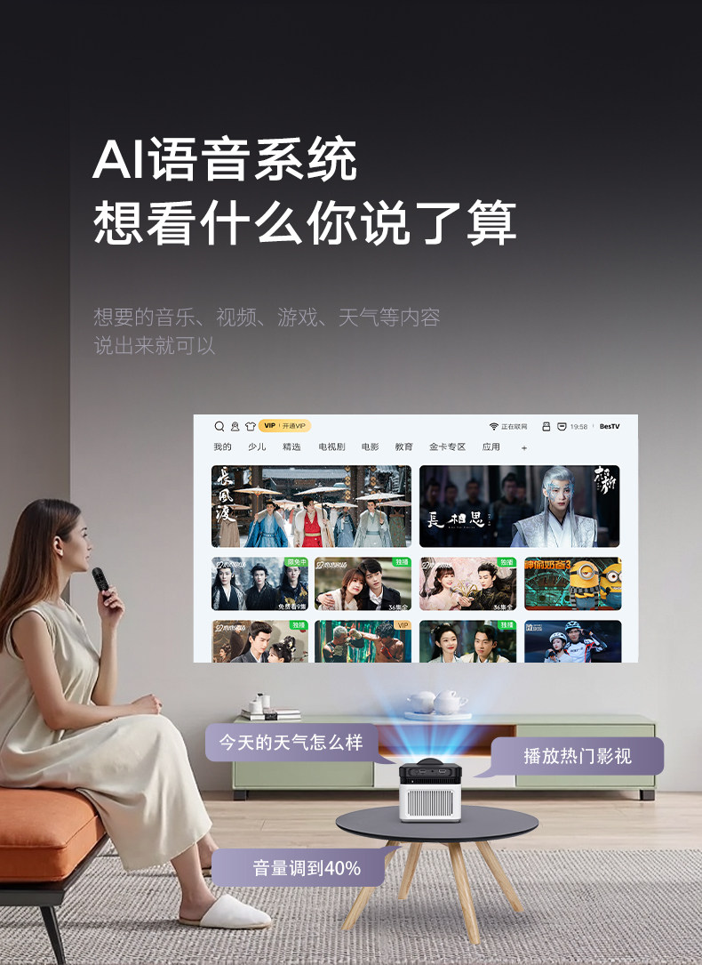 [Ultra Short Throw] Magcubic Projector Home Ultra-High Definition Tv Curtain Integrated Living Room Can Be Used during Daytime and Can Be Projected with White Wall Commercial Projector Mobile Phone and Computer Wireless Screen Projection