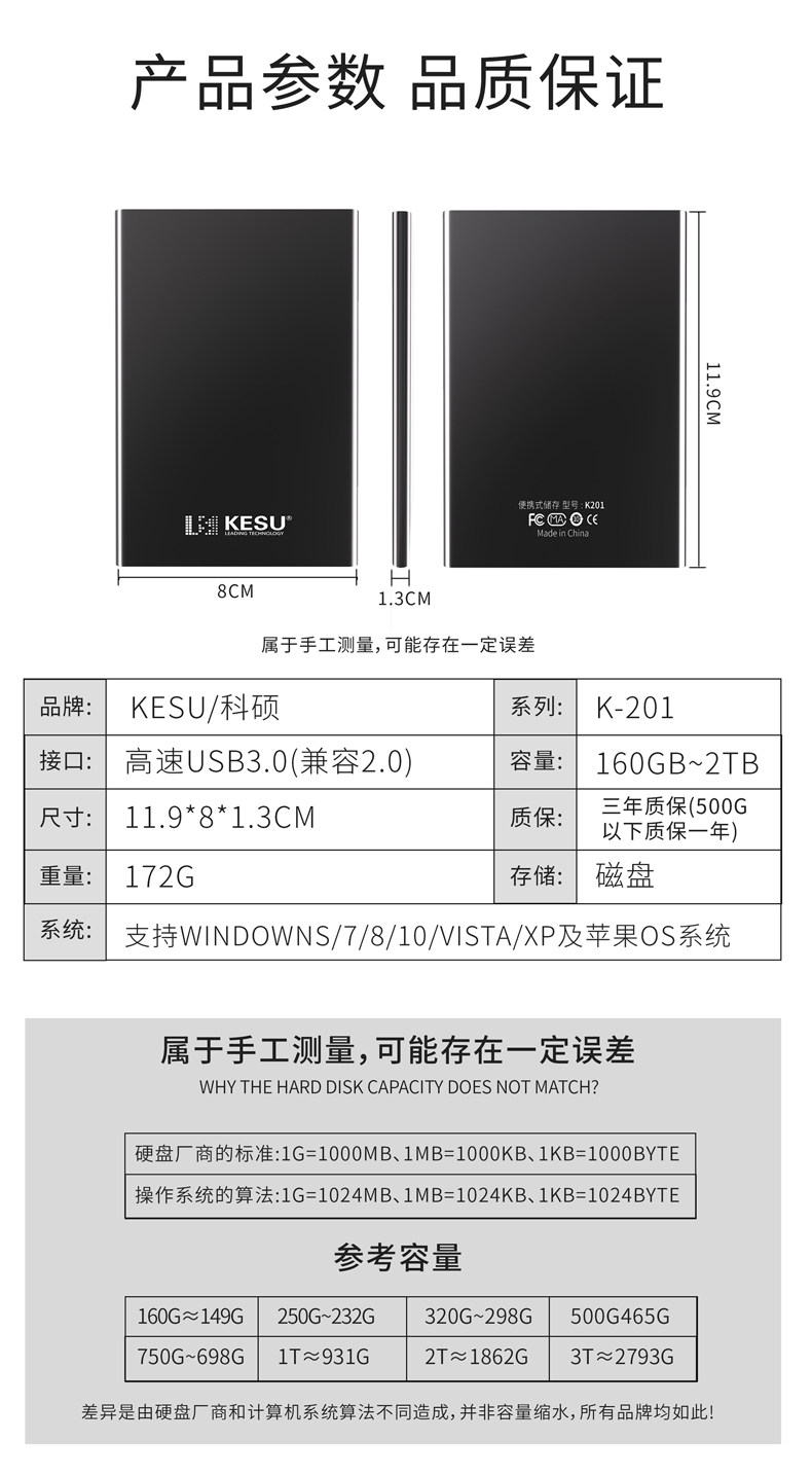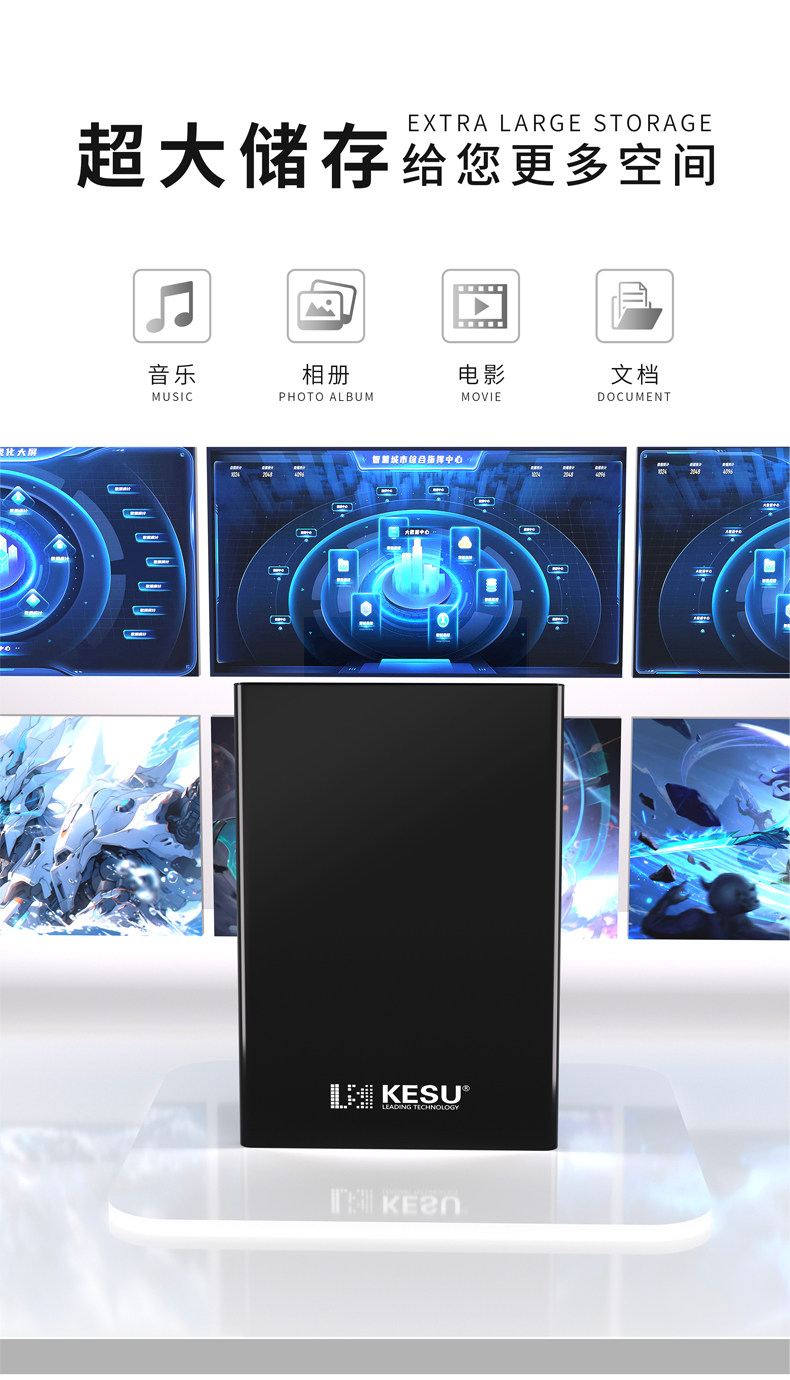 Keshuo Metal Mobile Hard Drive 1t Mobile Phone Computer 500g External Storage High-Speed 2t Mechanical Hard Drive 320g