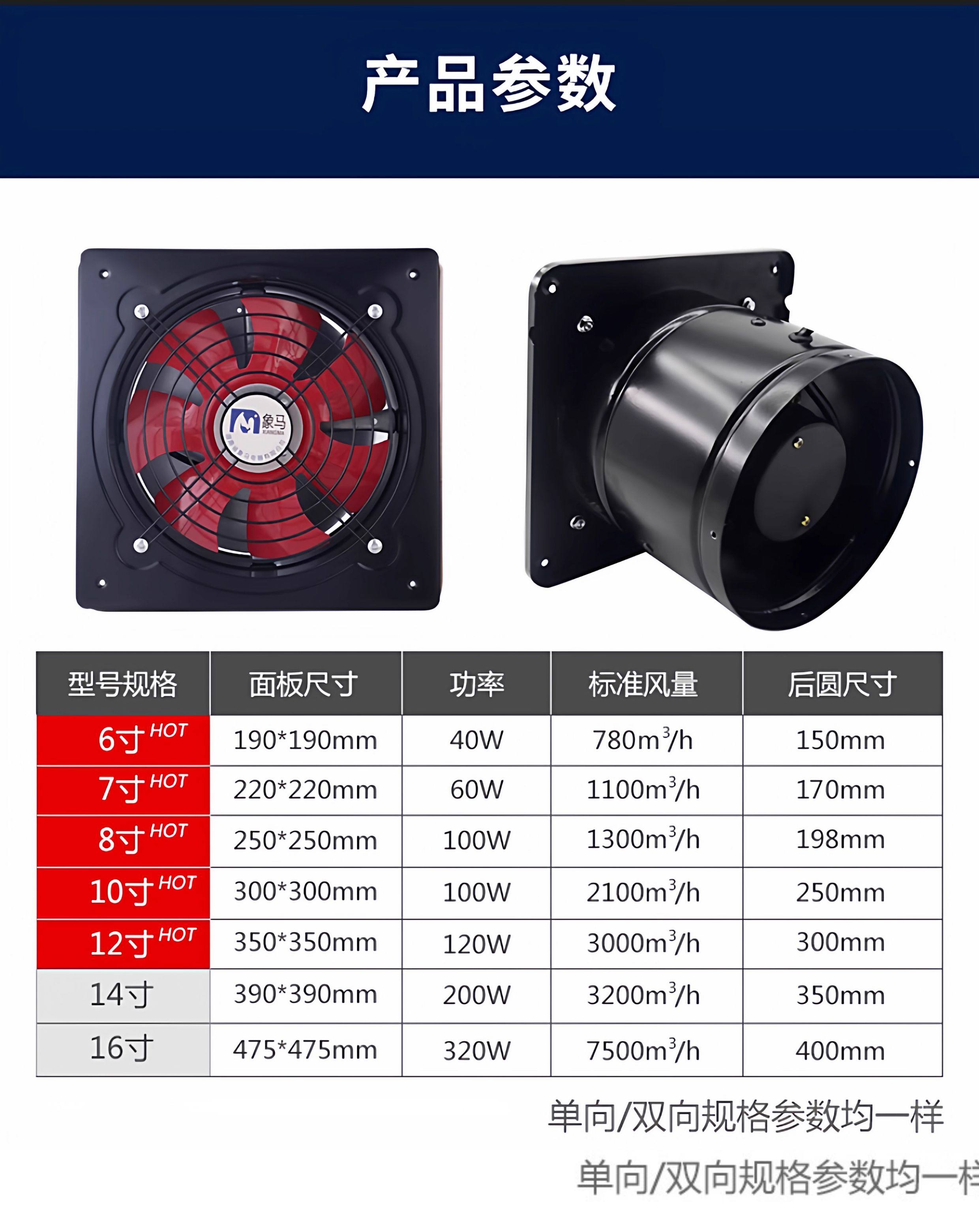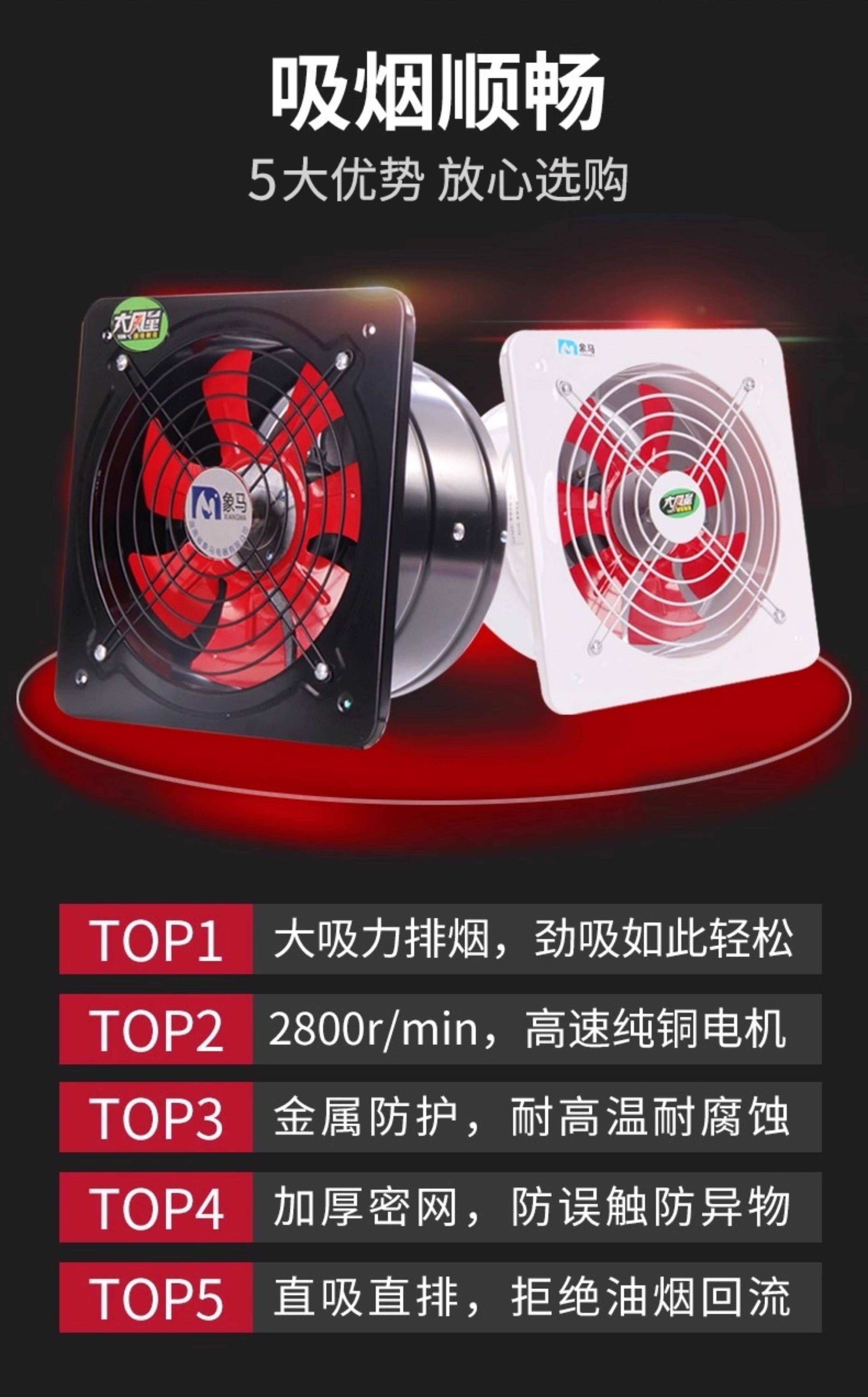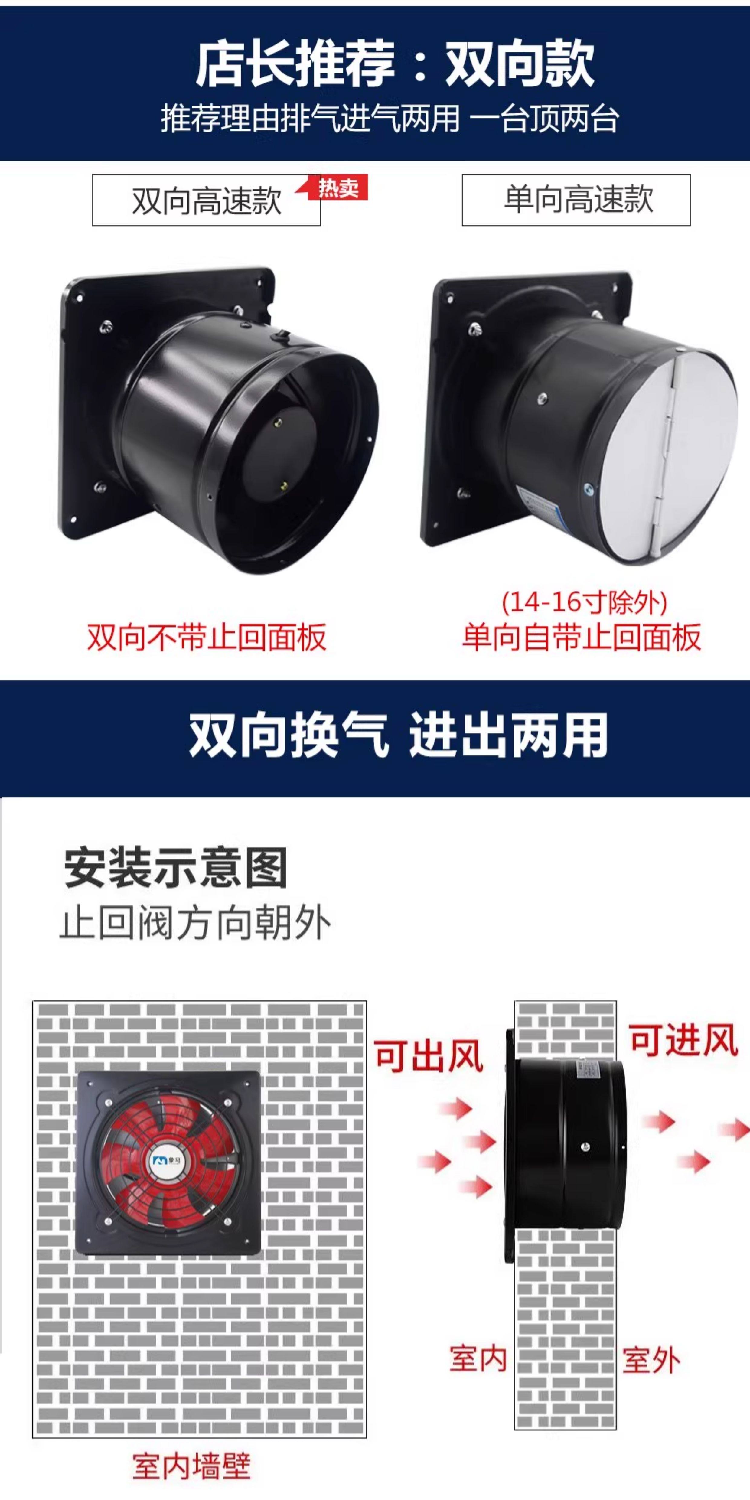 High-Power Exhaust Fan, Powerful Oil Fume Exhaust Fan, Two-Way High-Speed Ventilation Fan, Household Range Hood
