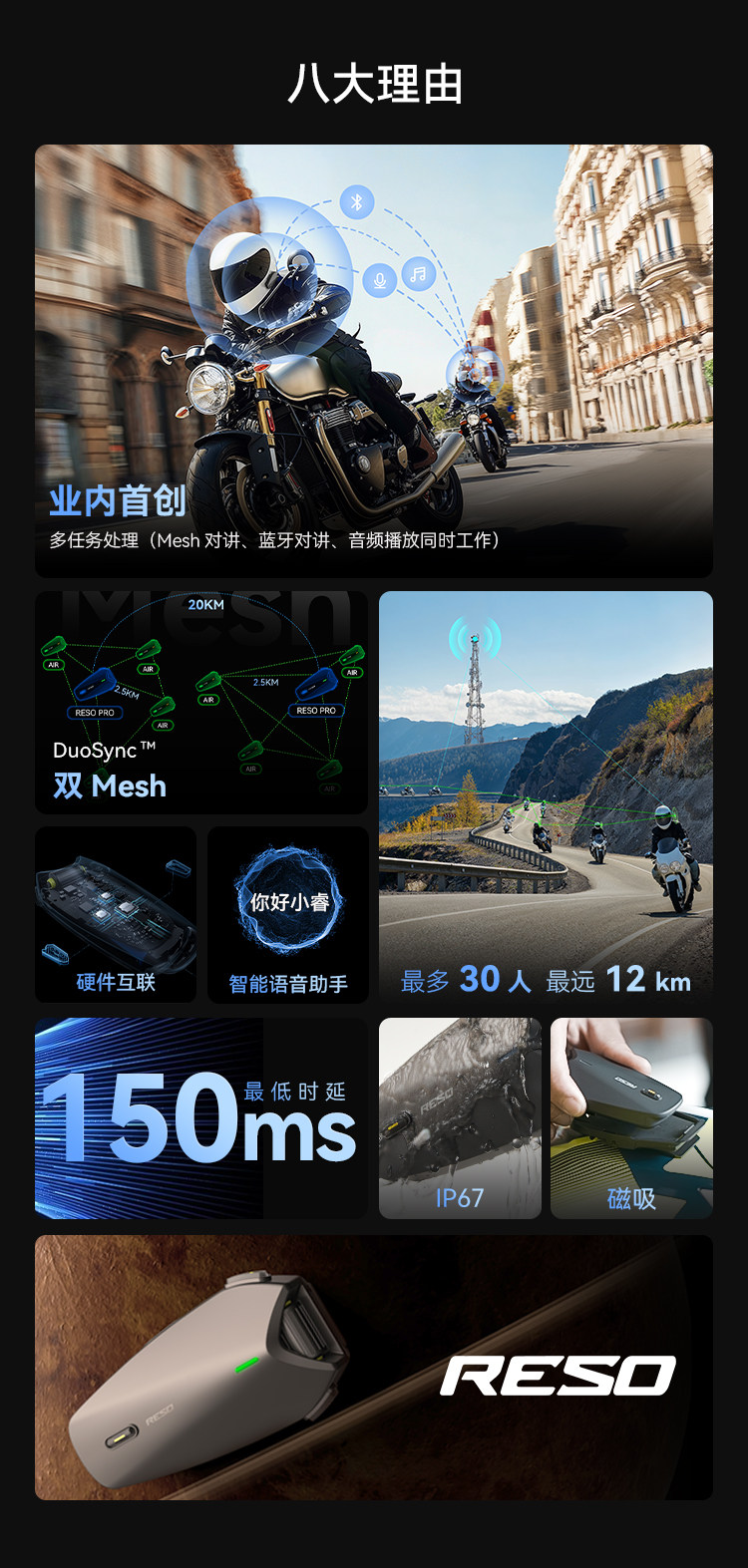 Reso Bluetooth Headset Motorcycle Helmet Mesh Intercom Noise Reduction Waterproof Music Listening Integrated Smart Full-Face Helmet