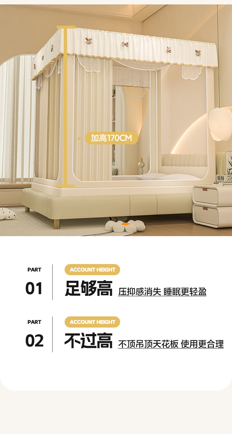 | Color Classification | Light Blue - No Bed Curtain Model Comes with Dustproof Top [5A Antibacterial Encrypted Tent] Encrypted Mesh - Anti-Mosquito and Anti-Fall,Beige - No Bed Curtain Model Comes with Dustproof Top [5A Antibacterial Encrypted Tent] Encrypted Mesh - Anti-Mosquito and Anti-Fall,Pink Jade - No Bed Curtain Model Comes with Dustproof Top [5A Antibacterial Encrypted Tent] Encrypted Mesh - Anti-Mosquito and Anti-Fall,Light Grey - No Bed Curtain Model with Dustproof Top [5A Antibacterial Encrypted Mesh] - Encrypted Mesh - Mosquito-Repellent and Fall-Proof,Light Blue Solid Color Bed Canopy with Dustproof Top - [5A Antibacterial, High-Density Mesh] All-Season Style! Soft Light Blocking, Mosquito-Repellent, and Fall-Proof,Beige - Solid Color Bed Canopy + Dustproof Top [5A Antibacterial Encrypted Mesh] All-Season Style! Soft Light Blocking, Mosquito-Repellent, and Fall-Proof,Light Grey Solid Color Bed Curtain + Dustproof Top [5A Antibacterial Encrypted Mesh] - All Seasons! Soft Light Blocking, Mosquito-Repellent, and Fall-Proof,Light Gray Lace-Upgraded Three-Sided Quilted + Dust-Proof Top [5A Antibacterial Encrypted Tent Yarn] Top Version! Warm, Light-Blocking, Anti-Mosquito and Anti-Fall,Light Gray Hemming - Upgraded Three-Sided Quilted + Dust-Proof Top [5A Antibacterial Encrypted Tent Yarn] Top Version! Warm, Light-Blocking, Anti-Mosquito and Anti-Fall,Dark Gray Hemming - Upgraded Three-Sided Quilted + Dust-Proof Top [5A Antibacterial Encrypted Tent Yarn] Top Version! Warm, Light-Blocking, Anti-Mosquito and Anti-Fall,Graphite Gray Edging - Upgraded Three-Sided Quilted Padding + Dustproof Top [5A Antibacterial Encrypted Mosquito Net] Premium Edition! Warm, Blackout, Mosquito-Repellent, and Drop-Proof,Light Gray Lace-Upgraded Four-Sided Quilted + Dust-Proof Top [5A Antibacterial Encrypted Tent Yarn] Top Version! Warm, Light-Blocking, Anti-Mosquito and Anti-Fall,Light Gray Hemming - Upgraded Four-Sided Quilting + Dustproof Top [5A Antibacterial Encrypted Tent Yarn] Top Version! Warm, Light-Blocking, Anti-Mosquito and Anti-Fall,Dark Gray Hemming - Upgraded Four-Sided Quilting + Dustproof Top [5A Antibacterial Encrypted Tent Yarn] Top Version! Warm, Light-Blocking, Anti-Mosquito and Anti-Fall,Graphite Gray Edging - Upgraded Four-Sided Quilting + Dustproof Top [5A Antibacterial Encrypted Tent Yarn] Top Version! Warm, Light-Blocking, Anti-Mosquito and Anti-Fall |