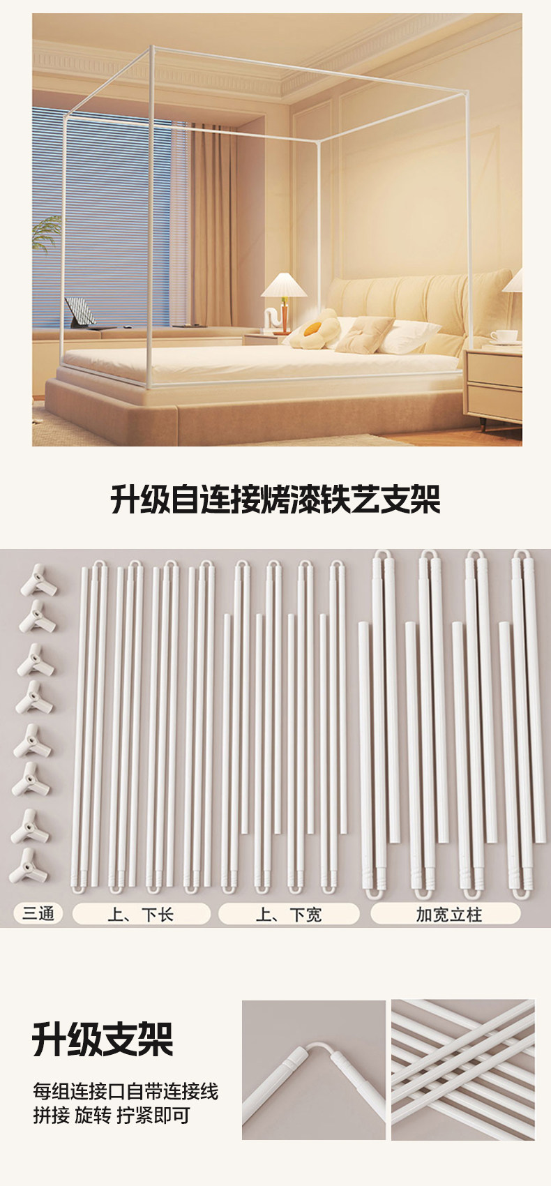 | Applicable Bed Size | 120*200Cm*170Cm High [Coin-Thick Columns and Thick Brackets],150*200Cm*170Cm High [Coin-Thick Columns and Thick Brackets],180*200Cm*170Cm High [Coin-Thick Columns and Thick Brackets],200*220Cm*170Cm High [Coin-Thick Columns and Thick Brackets],120*200Cm*170Cm High [Upgraded Self-Connecting Bracket, Lazy and No Splicing],150*200Cm*170Cm High [Upgraded Self-Connecting Bracket, Lazy and No Splicing],180*200Cm*170Cm High [Upgraded Self-Connecting Bracket, Lazy and No Splicing],200*220Cm*170Cm High [Upgraded Self-Connecting Bracket, Lazy and No Splicing] |