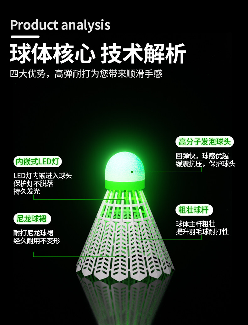 Peak Luminous Badminton Windproof Outdoor Night-Use Light-Emitting Plastic Nylon Fluorescent Badminton