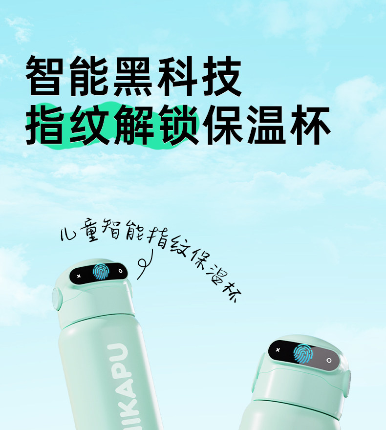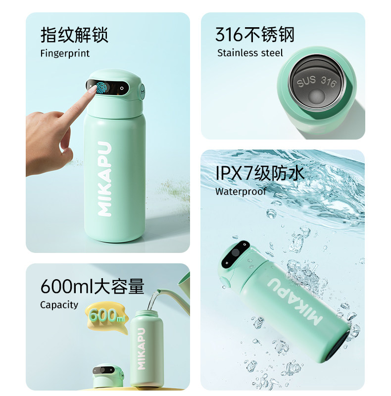 Mikapu Fingerprint Unlocking Thermos Cup with Password, Large Capacity Water Bottle, Good-Looking Gift for Junior High School Boys and Girls Going to School