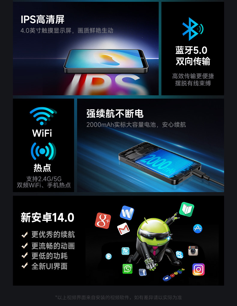 | Additional Features | Bluetooth Connection,External Speaker Function,Recording Function,Radio,Supports Photo Playback,Smart Operating System,Image Browsing,Support Wifi,MP3,Watch Videos/Read Novels/Play Games/Watch Animations |
