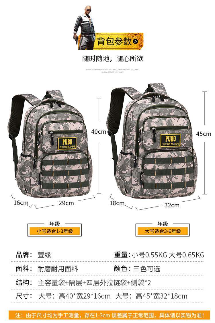 Schoolbags for Primary School Boys, Ultra-Light Camouflage Schoolbags, Male Third-Level Bags, Waterproof and Burden-Reducing Lightweight Chicken Backpacks