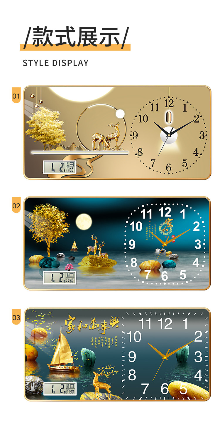 Clock Wall Hanging Living Room Decorative Painting Wall Clock Home Quartz Clock Silent Calendar Modern Bedroom Clock Wall Hanging Watch