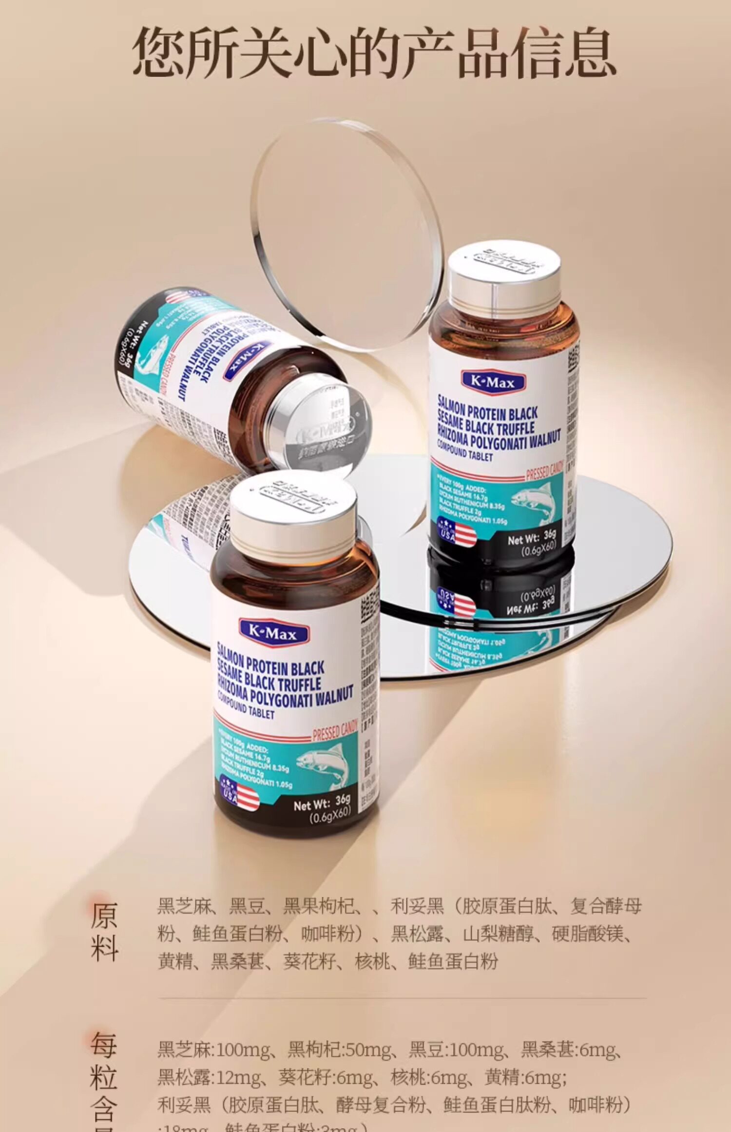 | Series | Salmon Protein Black Sesame Black Pine Nut Compound Tablets Peach God Yellow |