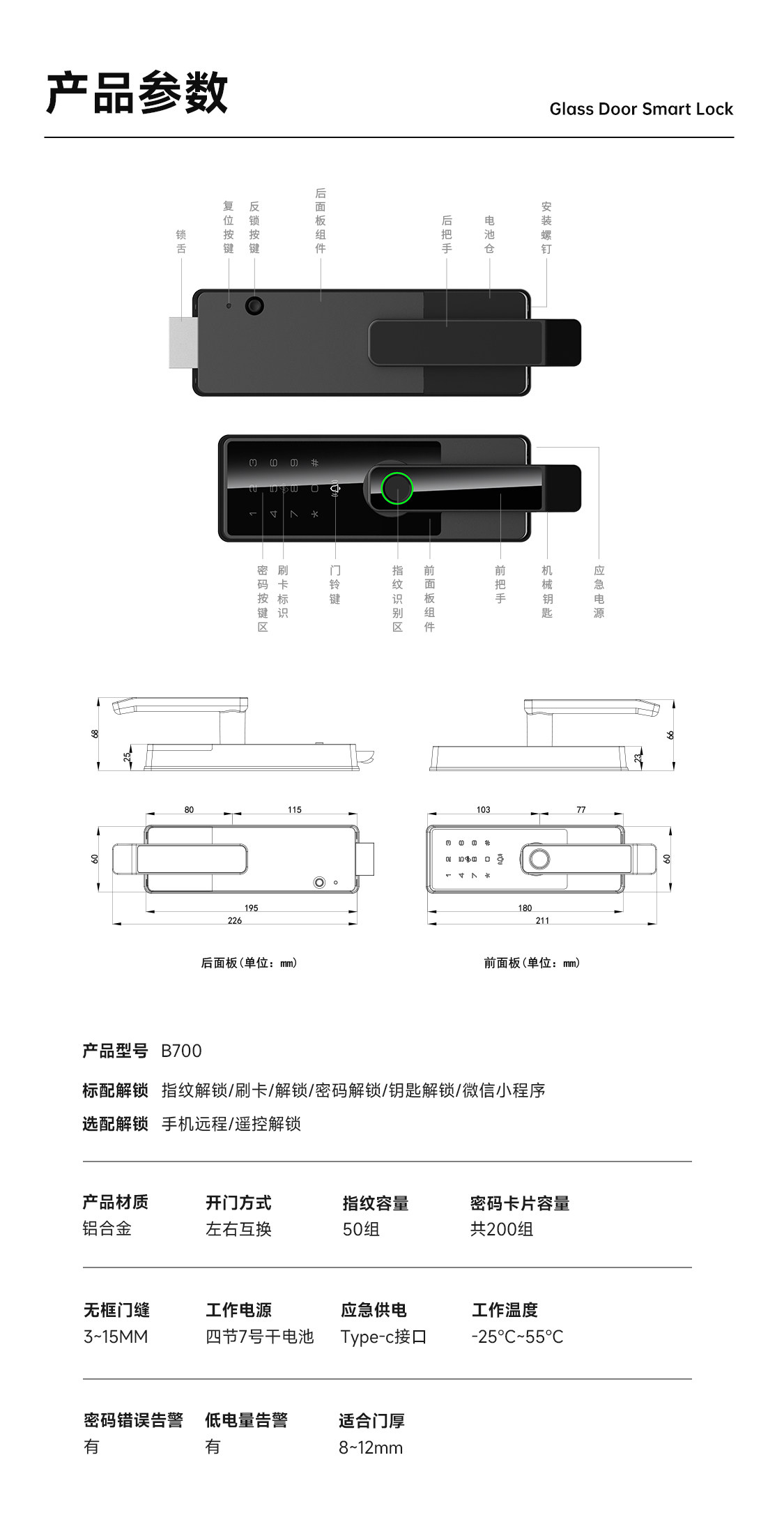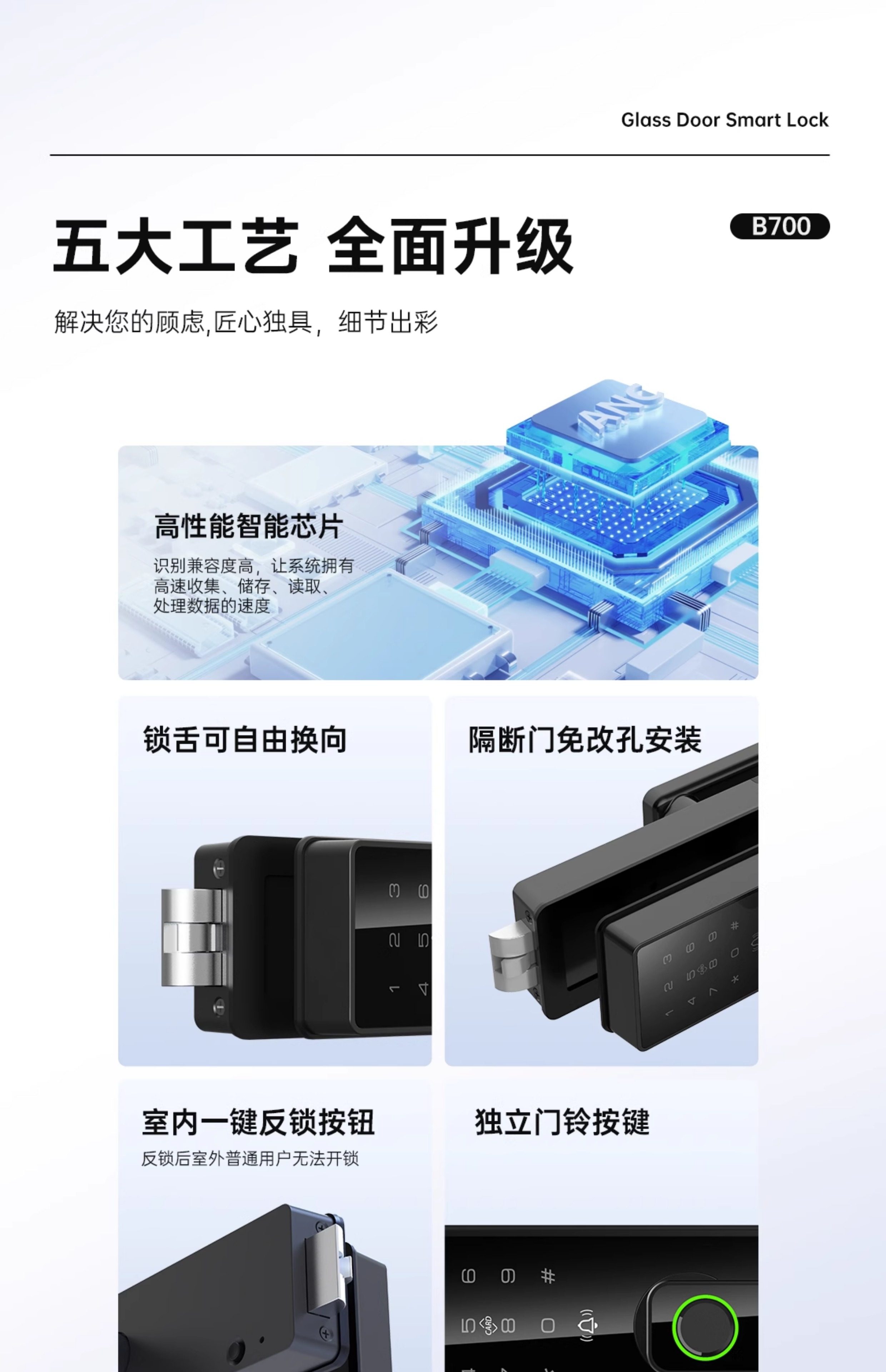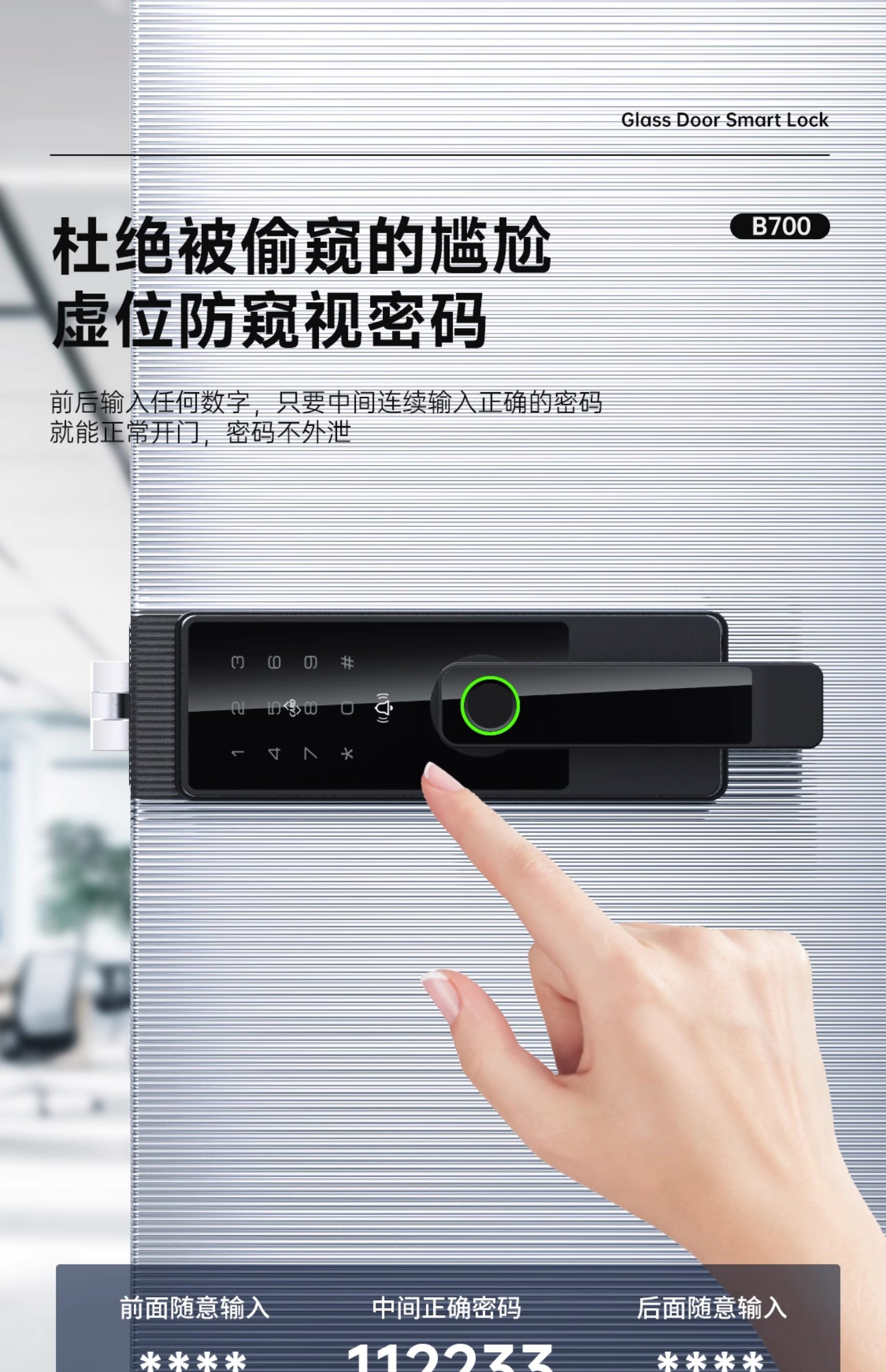 | Finish Color | B700 Supports/Original Hole Installation/Unrelated to Internal and External Opening/Unrelated to Left and Right Opening,B700 Black/Standard Version,B700 Black/Standard Configuration/Remote Control,B700 Black/Graffiti Remote Mobile App,B700 Double Glass Door/Real Lock + False Lock,B700 Black/Standard Version + Double Door Lock Box,B700 Black/Through Bluetooth Version,B800 Black/Standard Version,B800 Black/Standard Version + Double Door Lock Box,B800 Black/Standard Configuration/Remote Control,B800 Black/Graffiti Remote Mobile App,B600 Black/Standard Version/Only Supports Right Opening,B600 Black/Standard Configuration/Remote Control/Does Not Support Lock Tongue Reversal,B600 Black/Graffiti Remote Mobile App/Right Open/Does Not Support Lock Tongue Reversal,Factory Direct Sales, Quantity and Price |